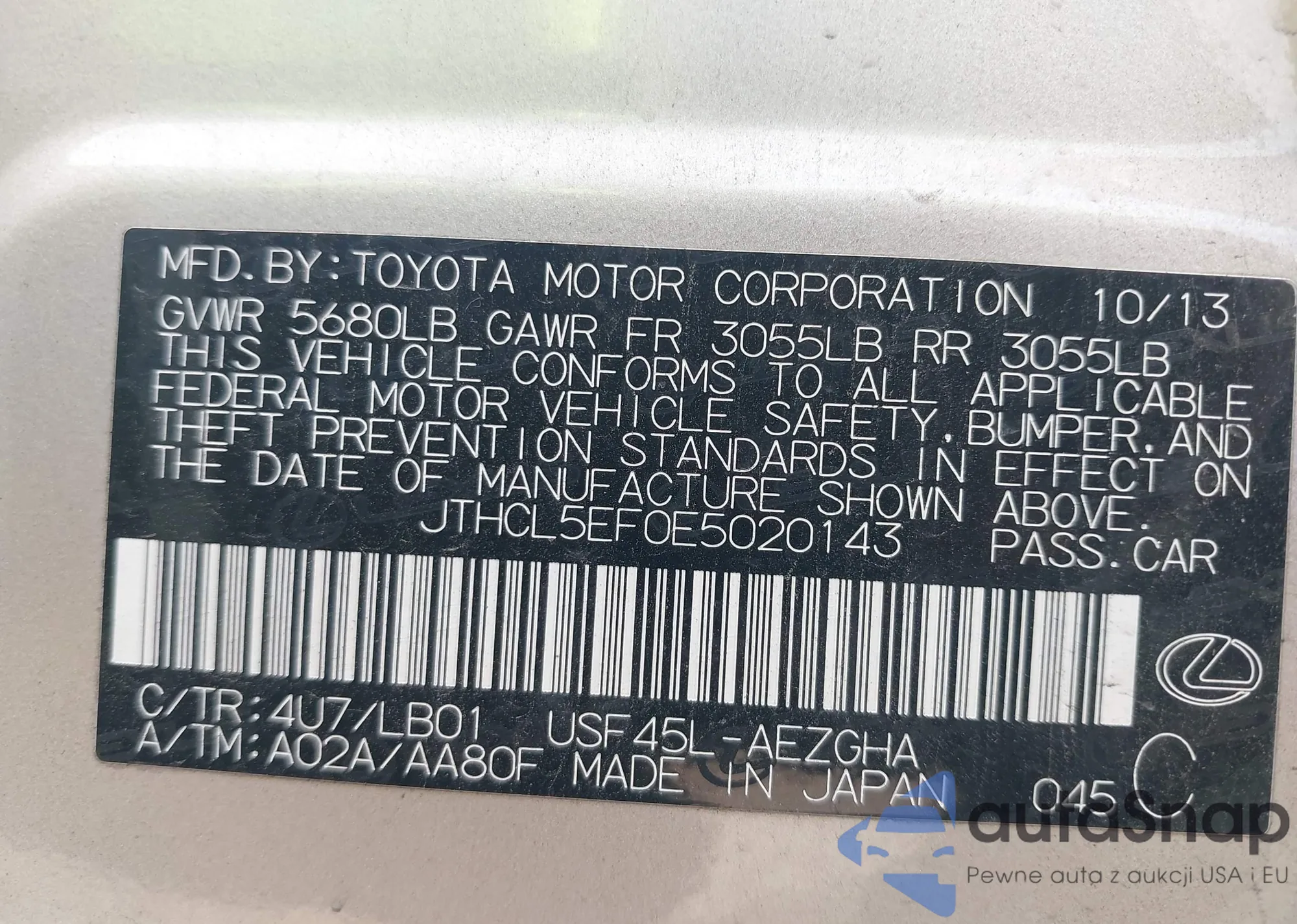 VIN: JTHCL5EF0E5020143