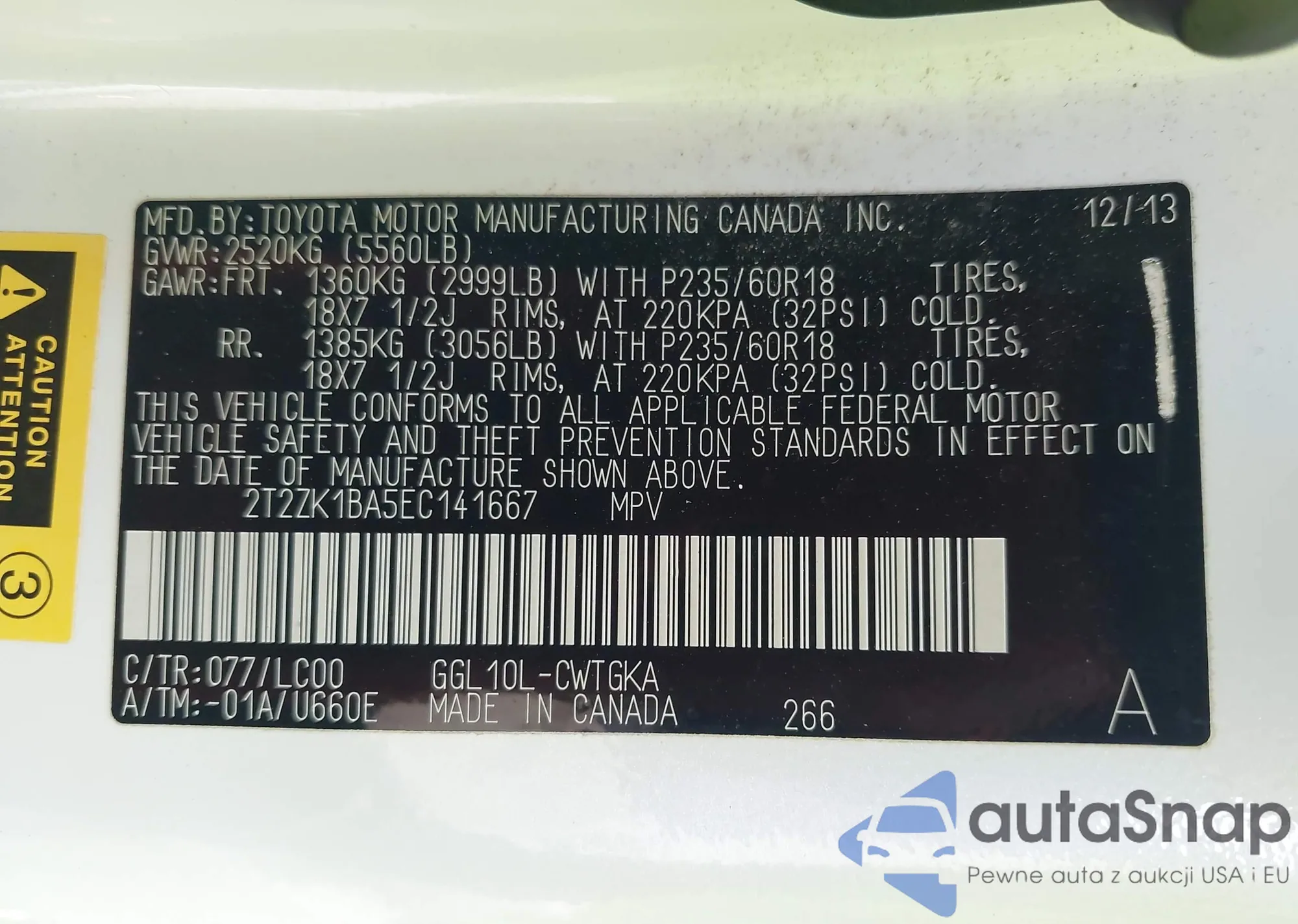 VIN: 2T2ZK1BA5EC141667
