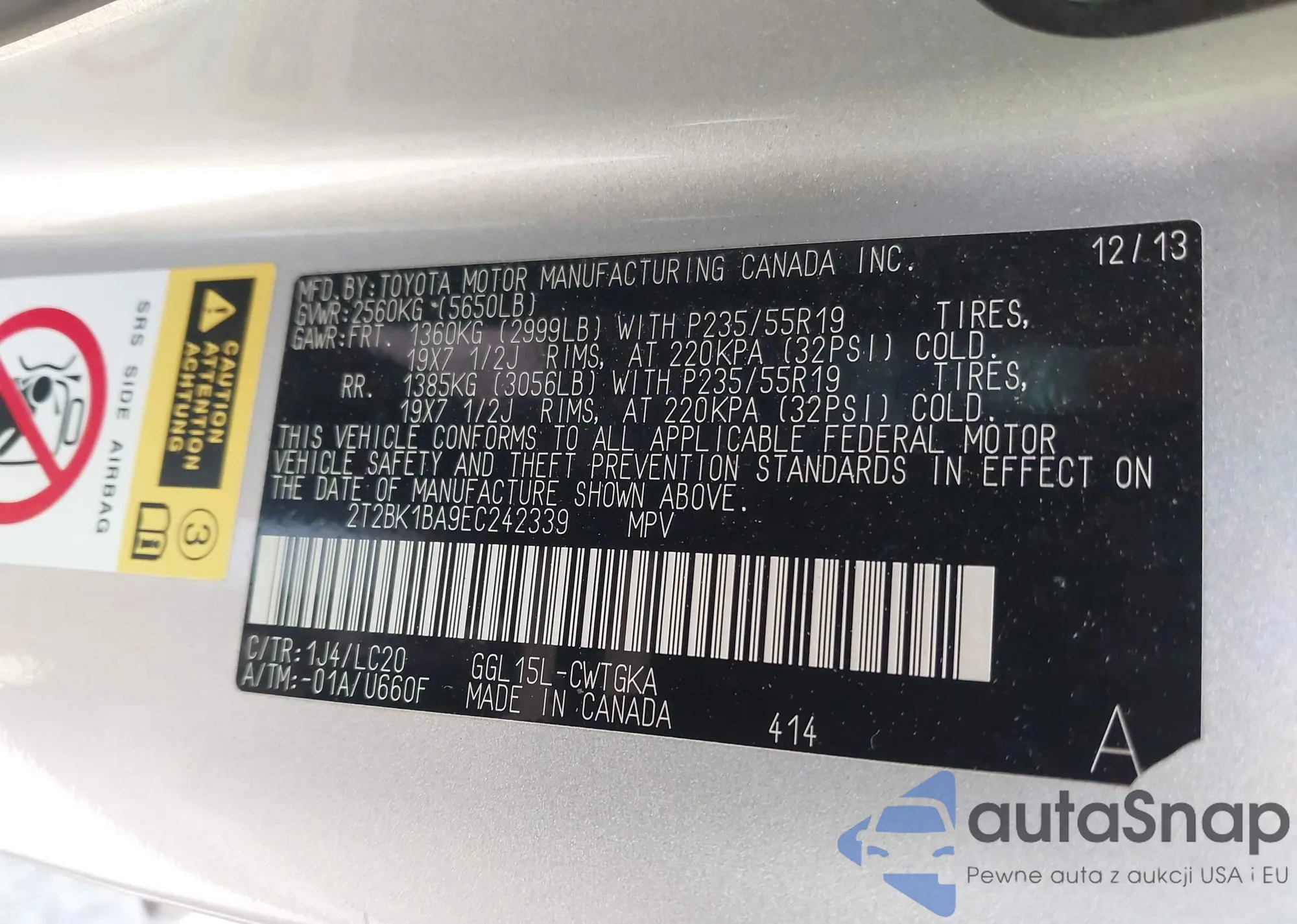 • VIN: 2T2BK1BA9EC242339