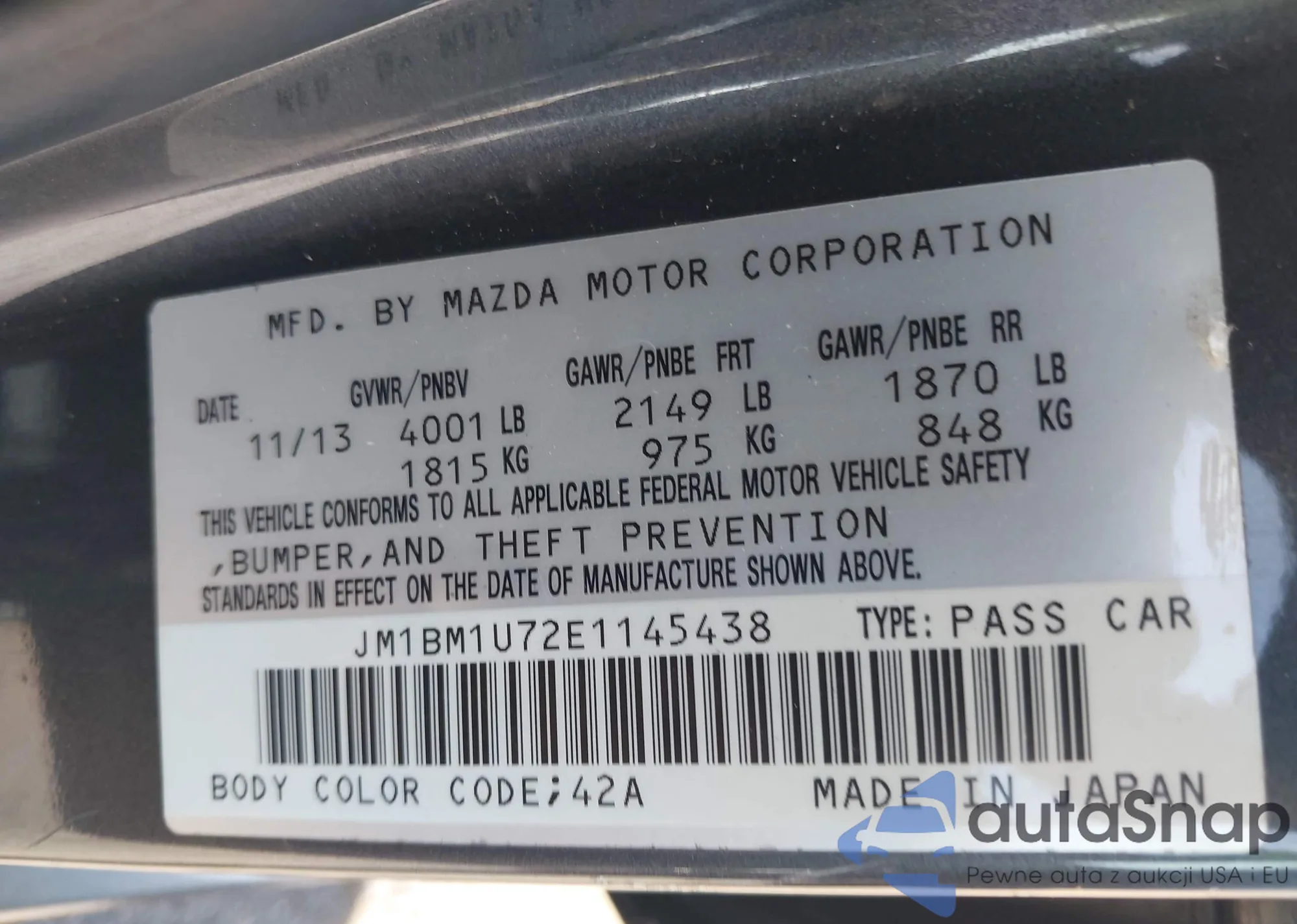 VIN: JM1BM1U72E1145438
