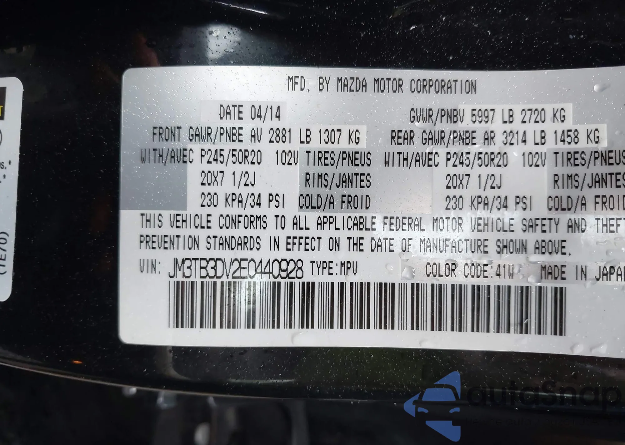 VIN: JM3TB3DV2E0440928