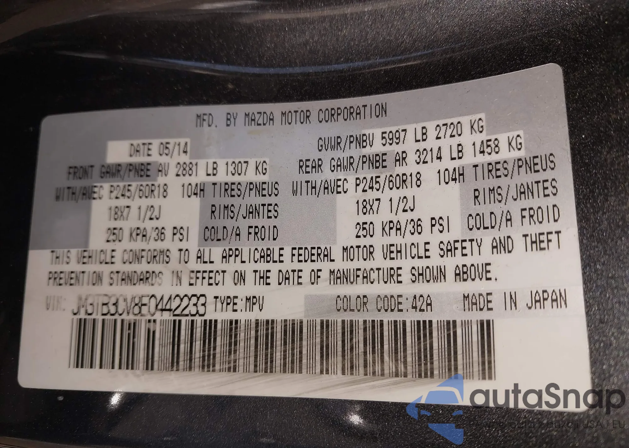 VIN: JM3TB3CV8E0442233