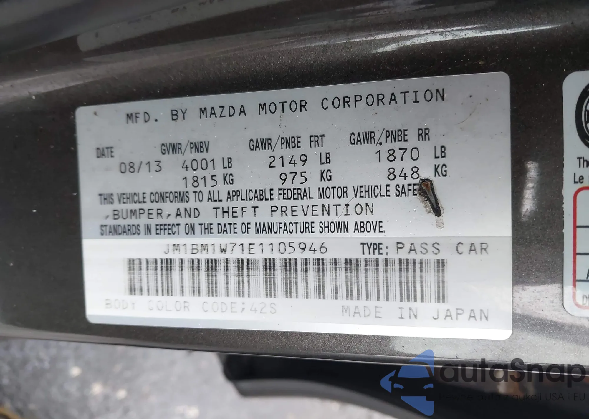 VIN: JM1BM1W71E1105946