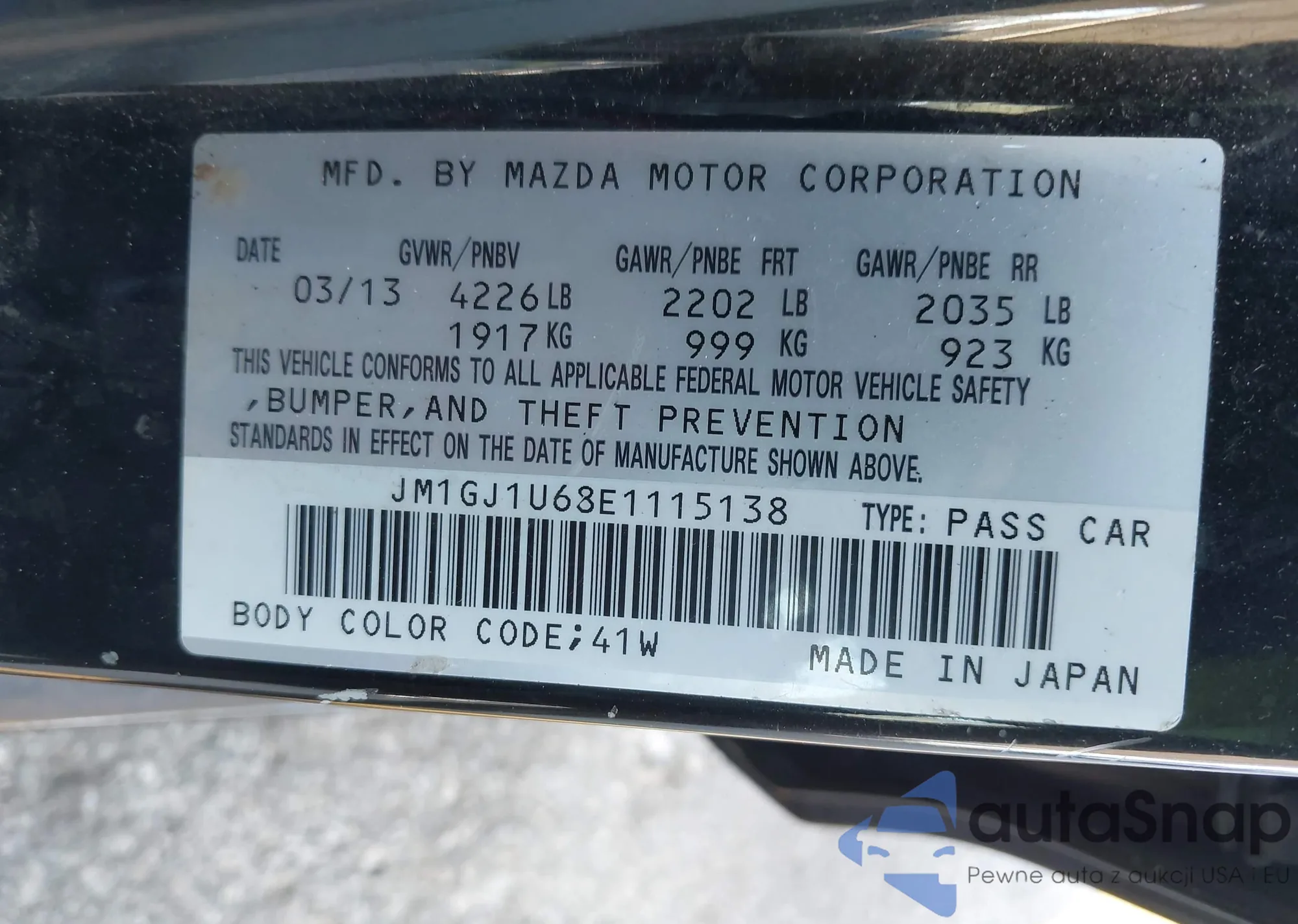 Автомобиль Mazda 6 2014 (VIN JM1GJ1U68E1115138) ранее не участвовал в торгах. Документы чистые, пробег соответствует или ниже среднего по рынку. Продаётся страховой компанией — рекомендуем покупку. Доставка в порт займет около 6–8 недель.