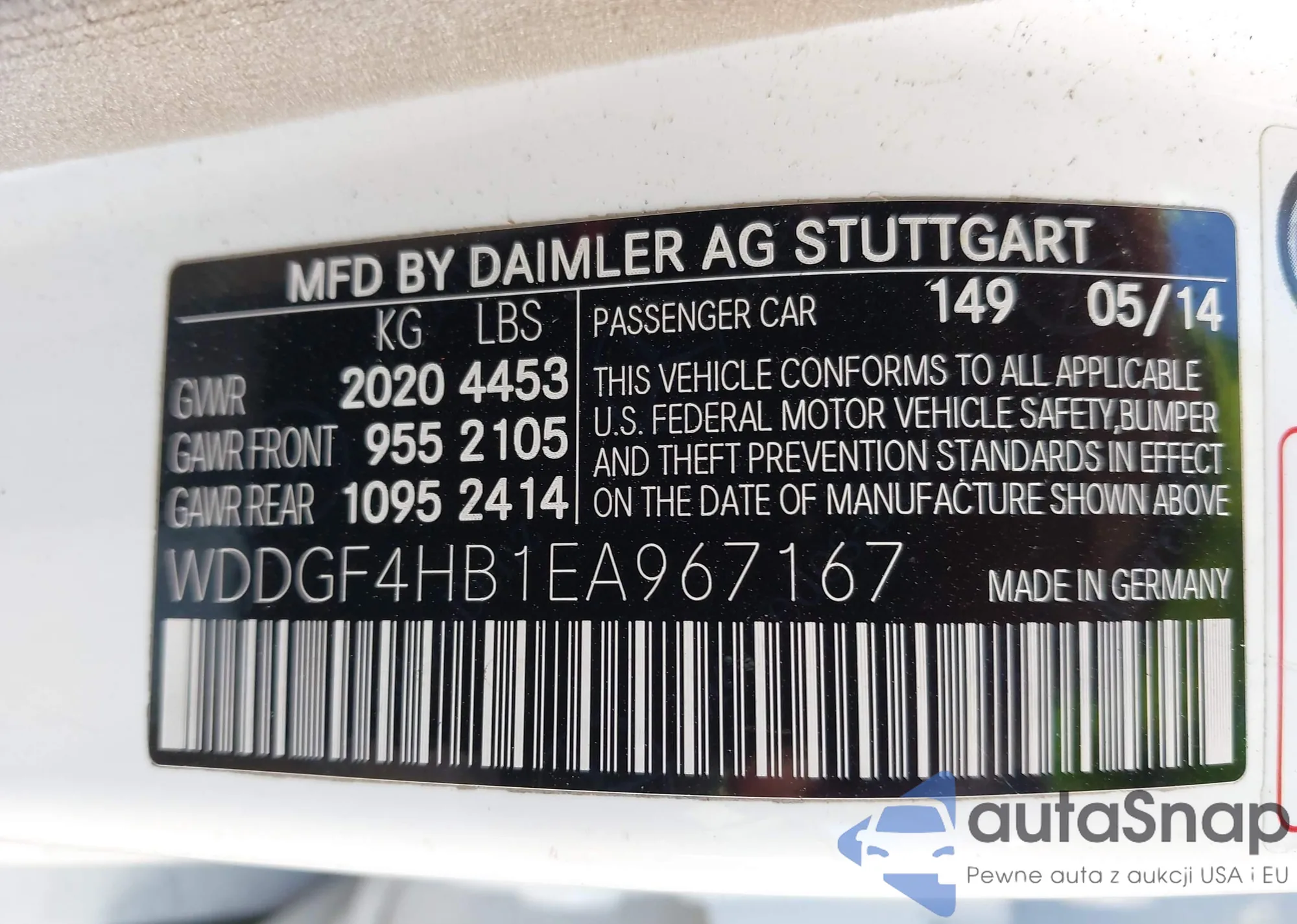 Автомобиль Mercedes-Benz C-klasse 2014 (VIN WDDGF4HB1EA967167) ранее не участвовал в торгах. Документы чистые, пробег соответствует или ниже среднего по рынку. Продаётся страховой компанией — рекомендуем покупку. Доставка в порт займет около 6–8 недель.