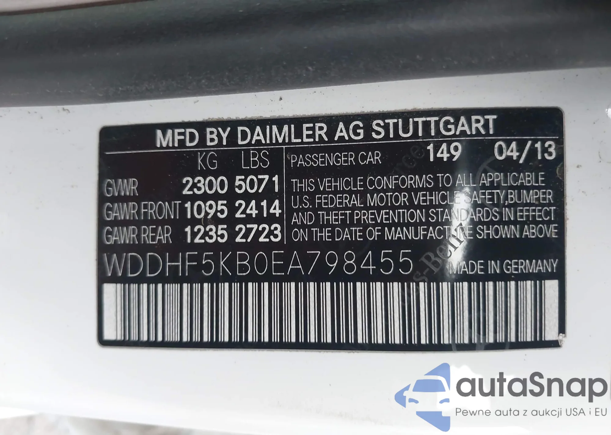 • VIN: WDDHF5KB0EA798455