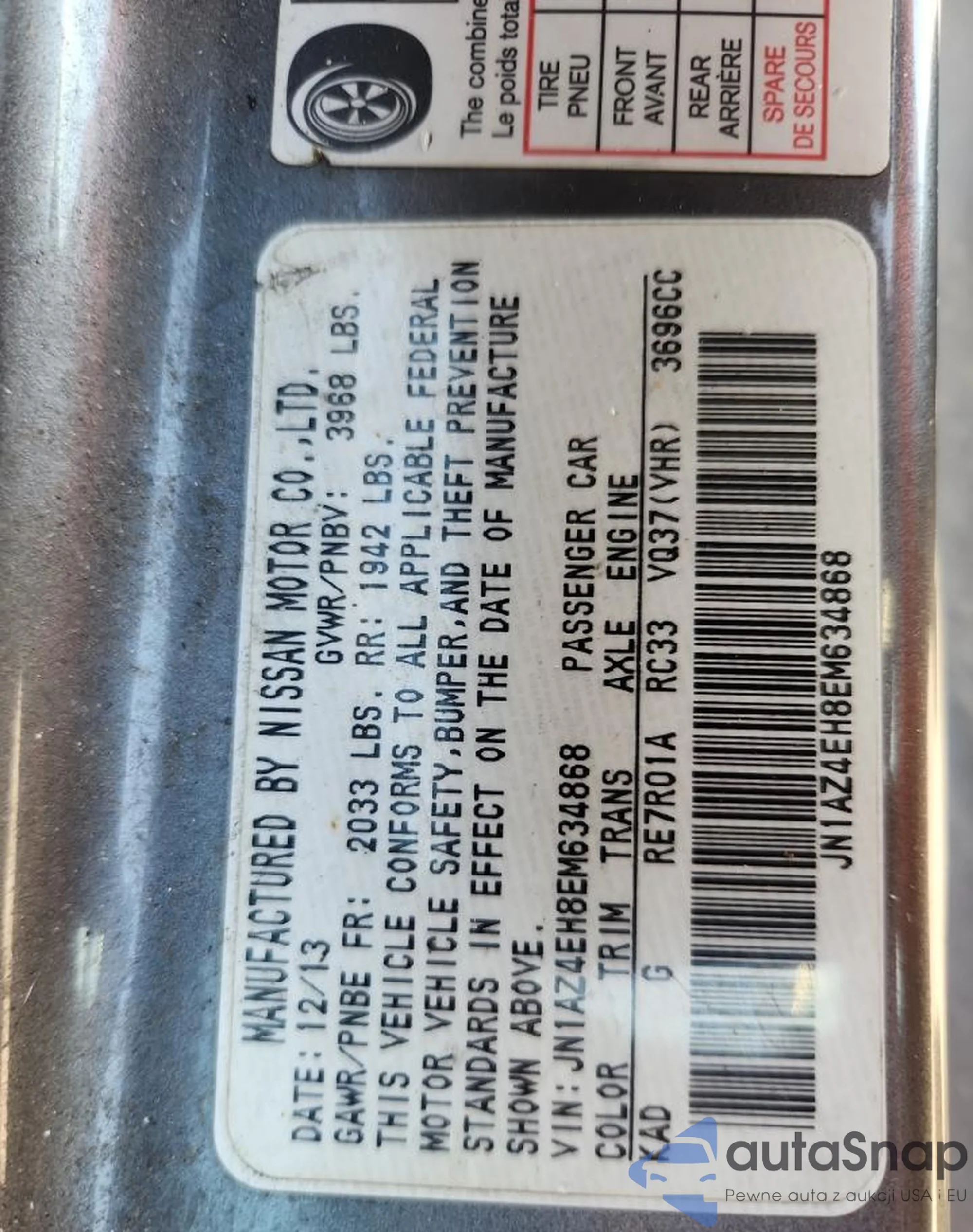 Автомобиль Nissan 370Z 2014 (VIN JN1AZ4EH8EM634868) продаётся непроверенным продавцом. Рекомендуем проверить отчет Carfax и подтвердить возможность регистрации перед покупкой.