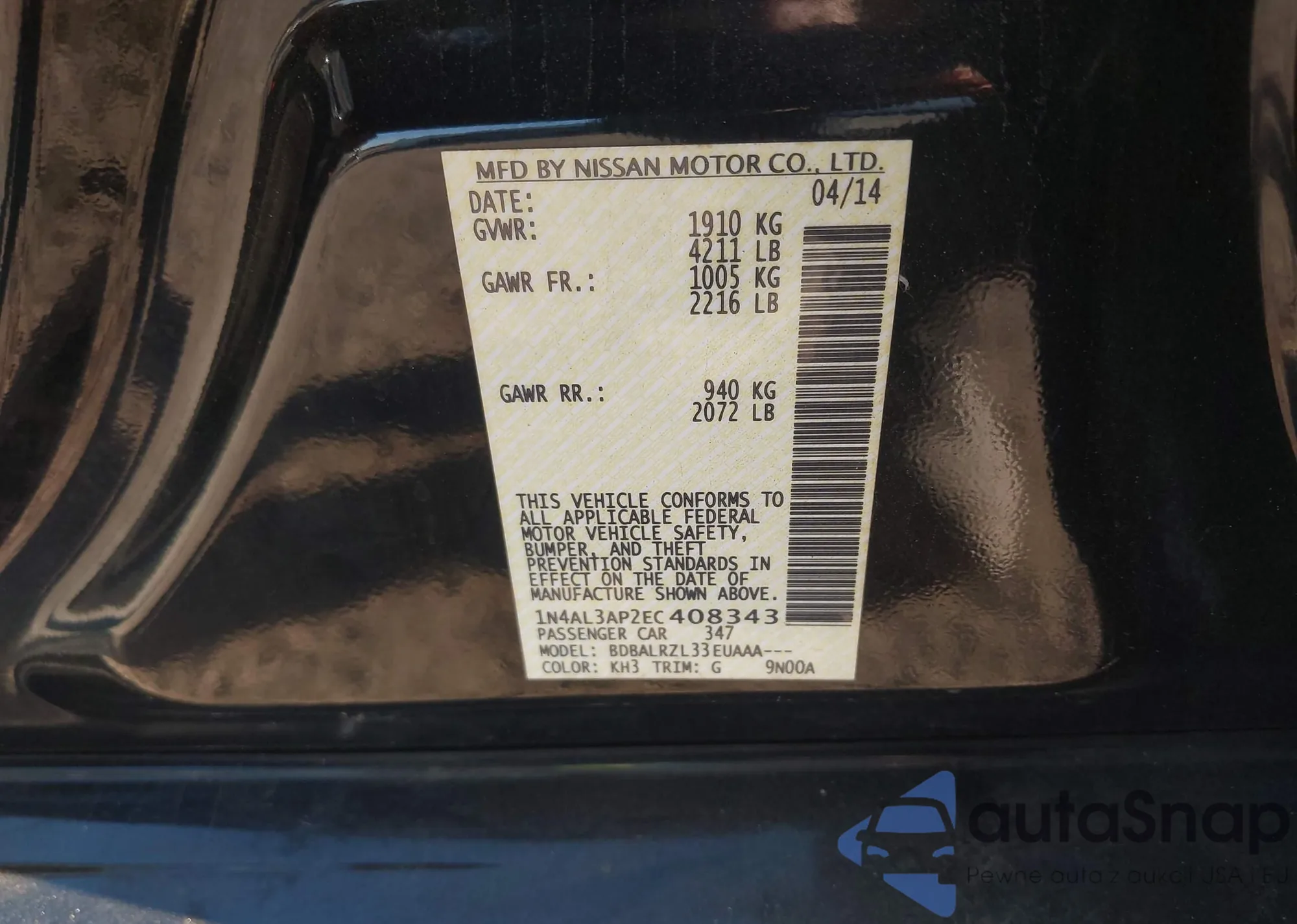 Автомобиль Nissan Altima 2014 (VIN 1N4AL3AP2EC408343) ранее не участвовал в торгах. Документы чистые, пробег соответствует или ниже среднего по рынку. Продаётся страховой компанией — рекомендуем покупку. Доставка в порт займет около 6–8 недель.
