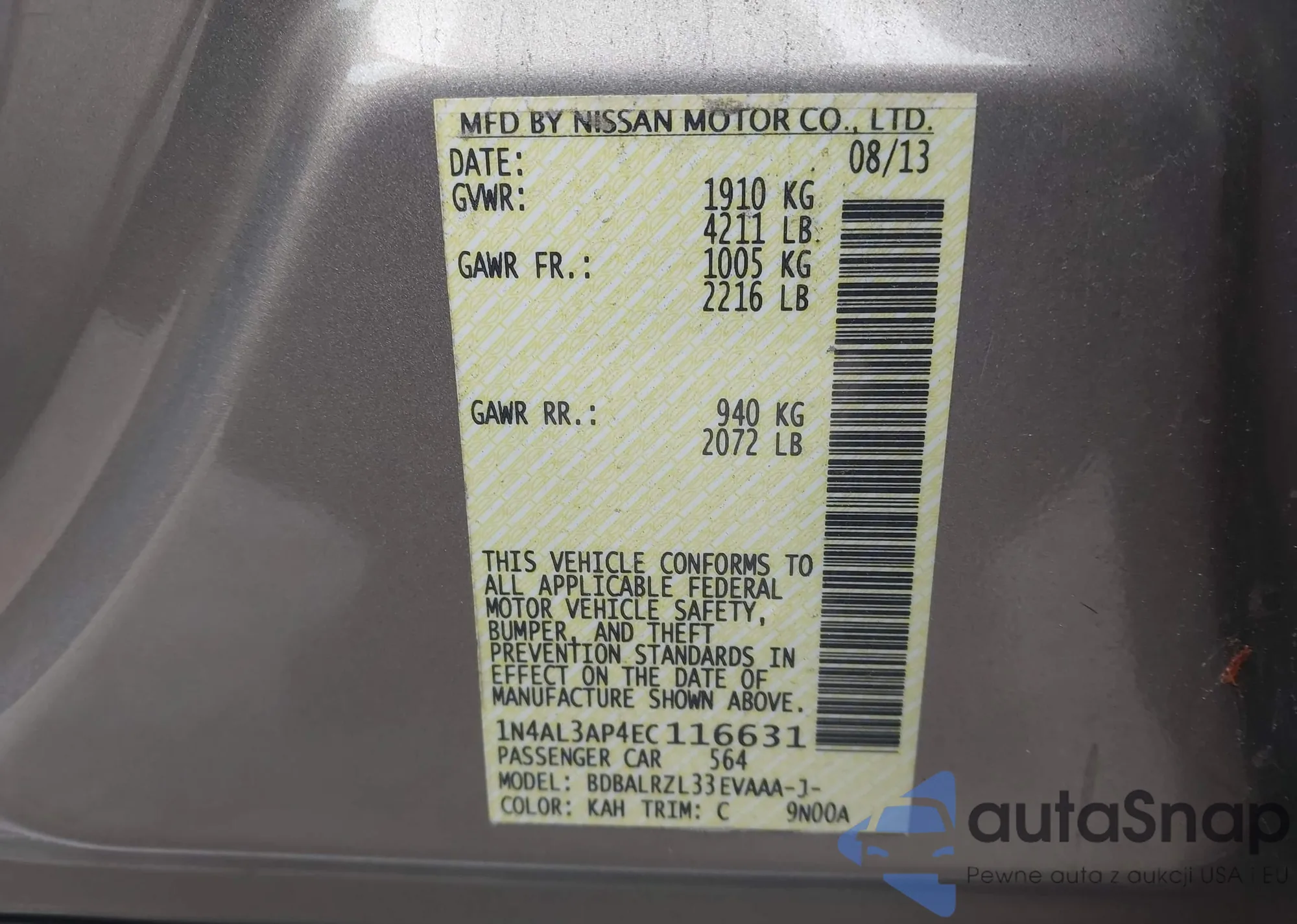 VIN: 1N4AL3AP4EC116631