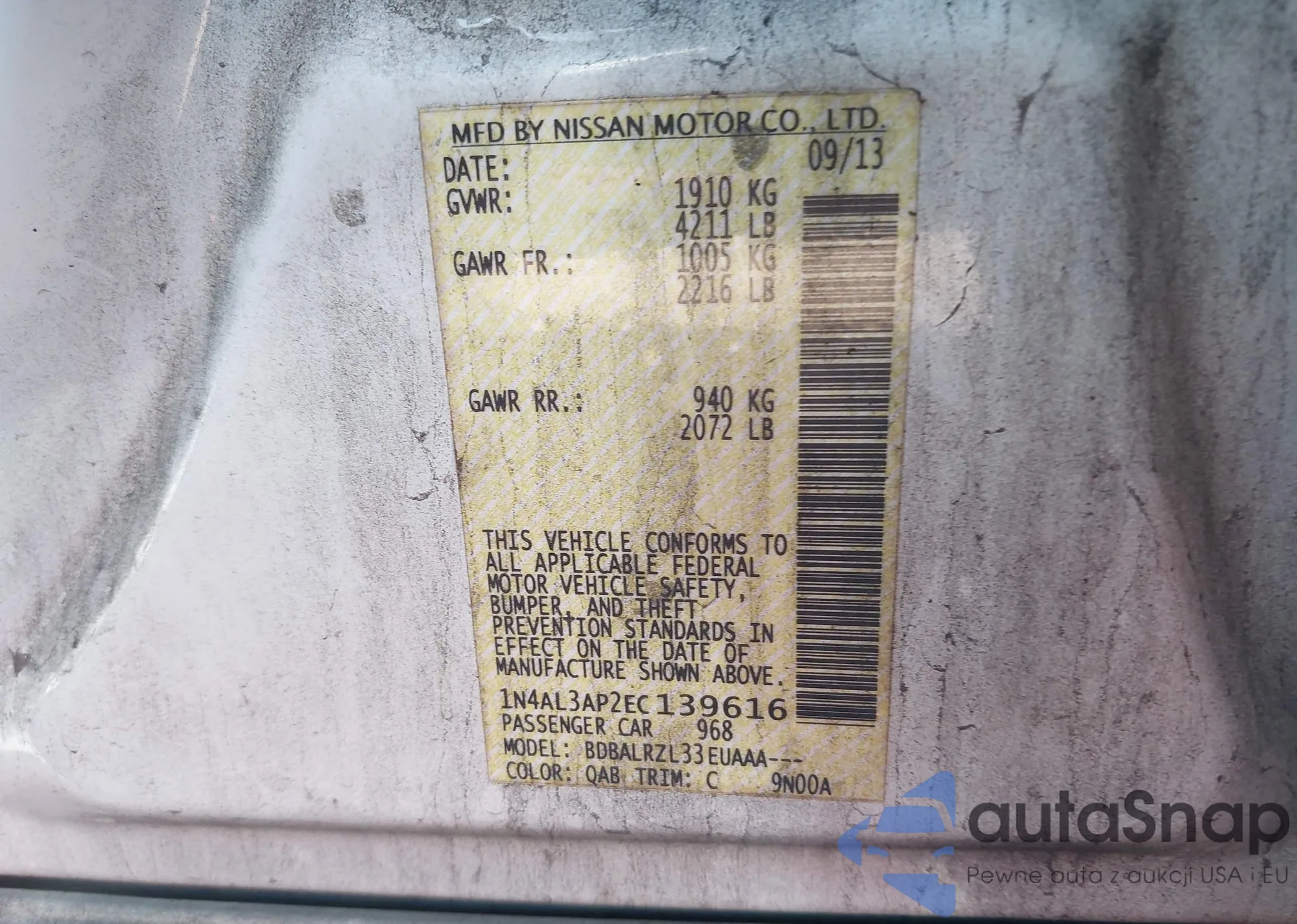 • VIN: 1N4AL3AP2EC139616