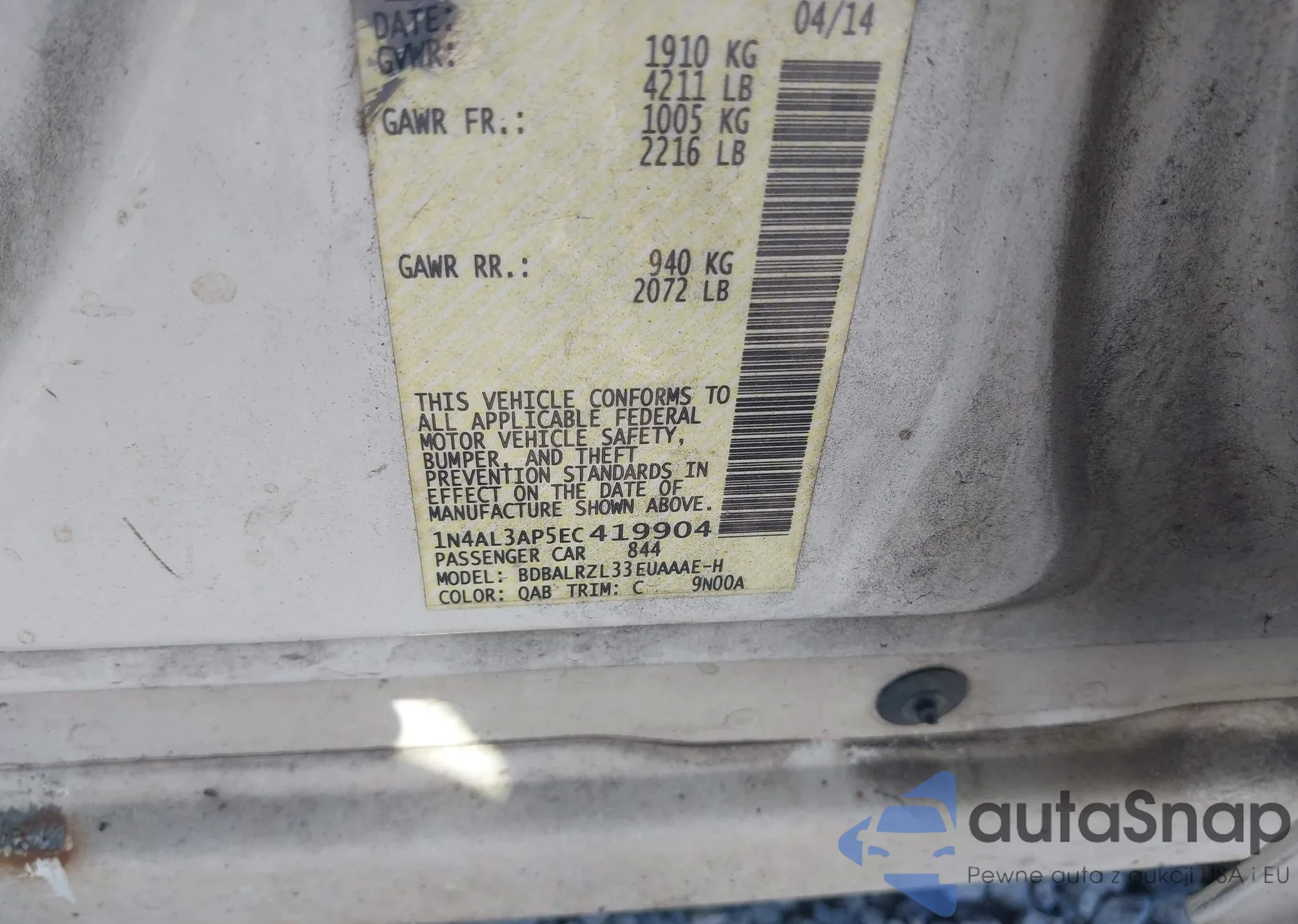 VIN: 1N4AL3AP5EC419904