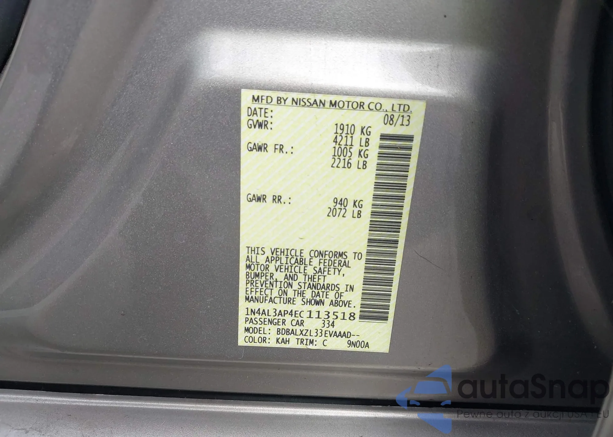 VIN: 1N4AL3AP4EC113518