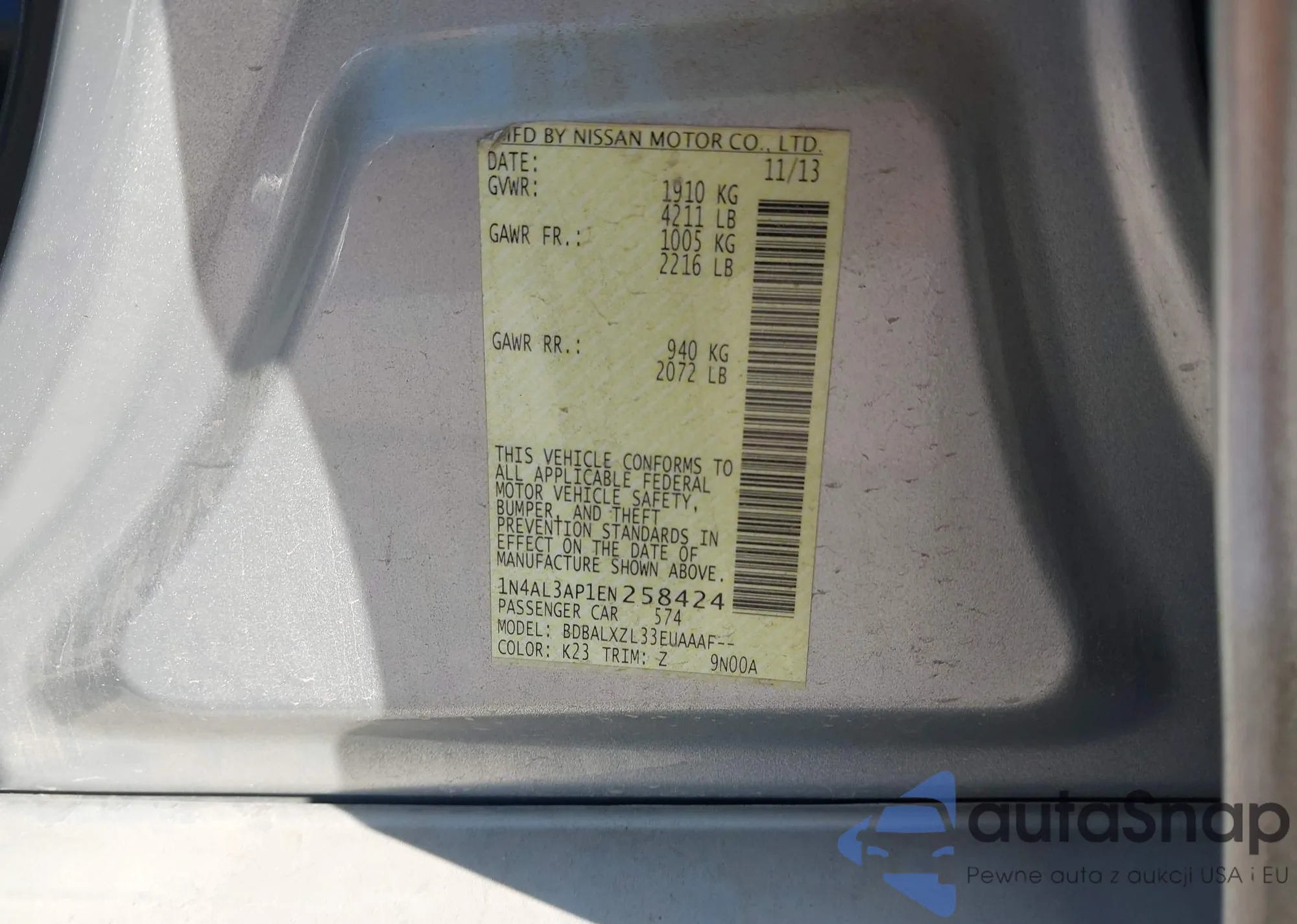 VIN: 1N4AL3AP1EN258424