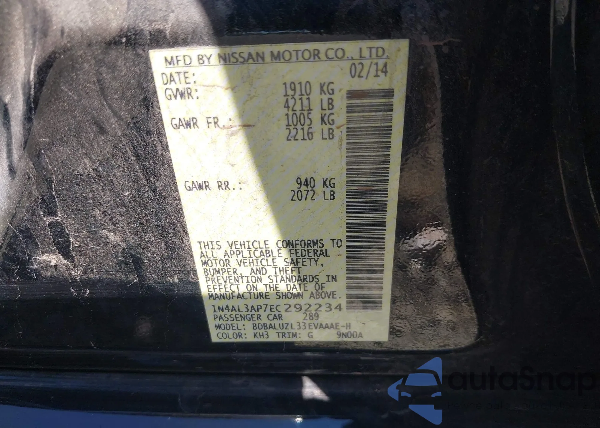 VIN: 1N4AL3AP7EC292234
