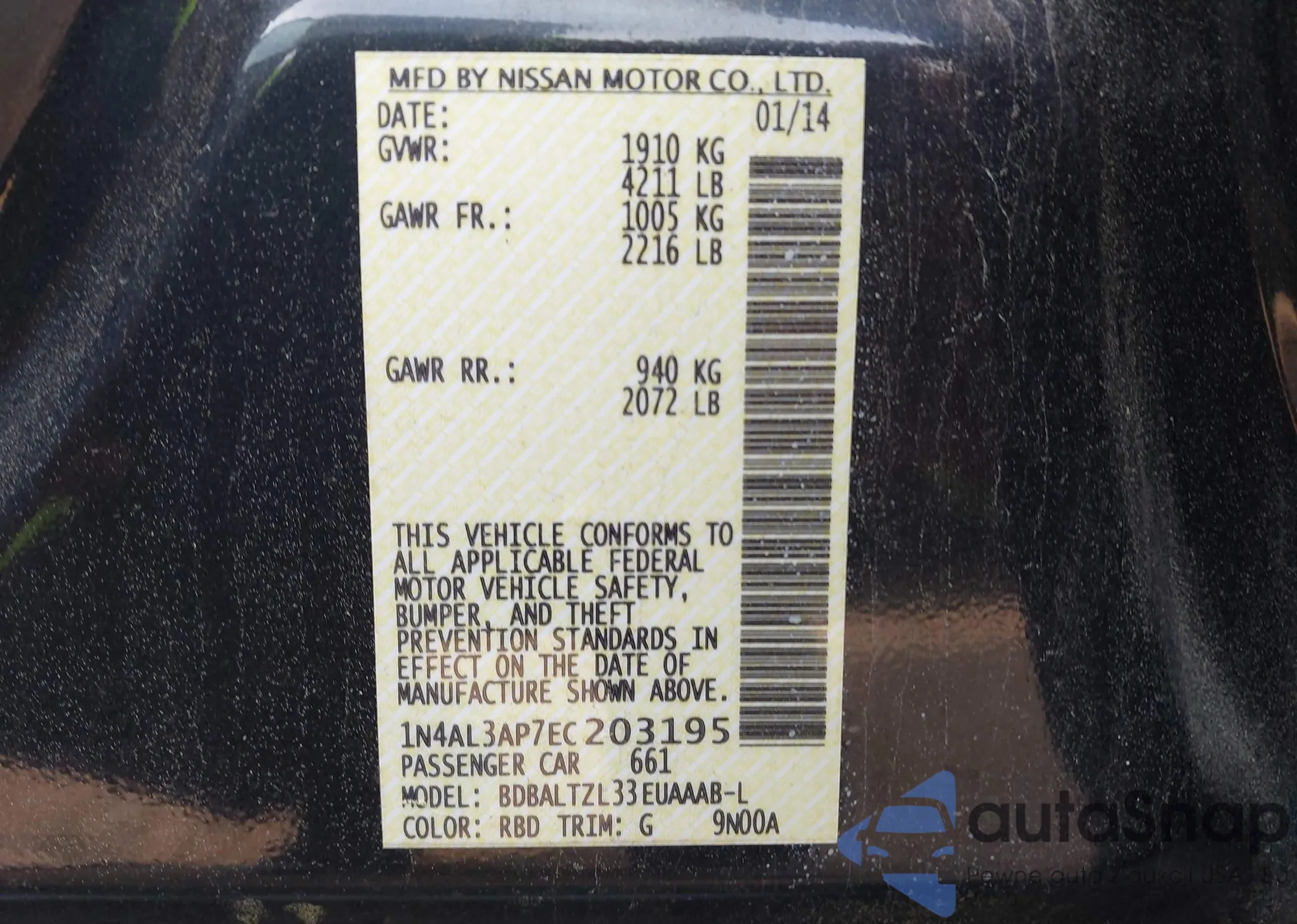 VIN: 1N4AL3AP7EC203195
