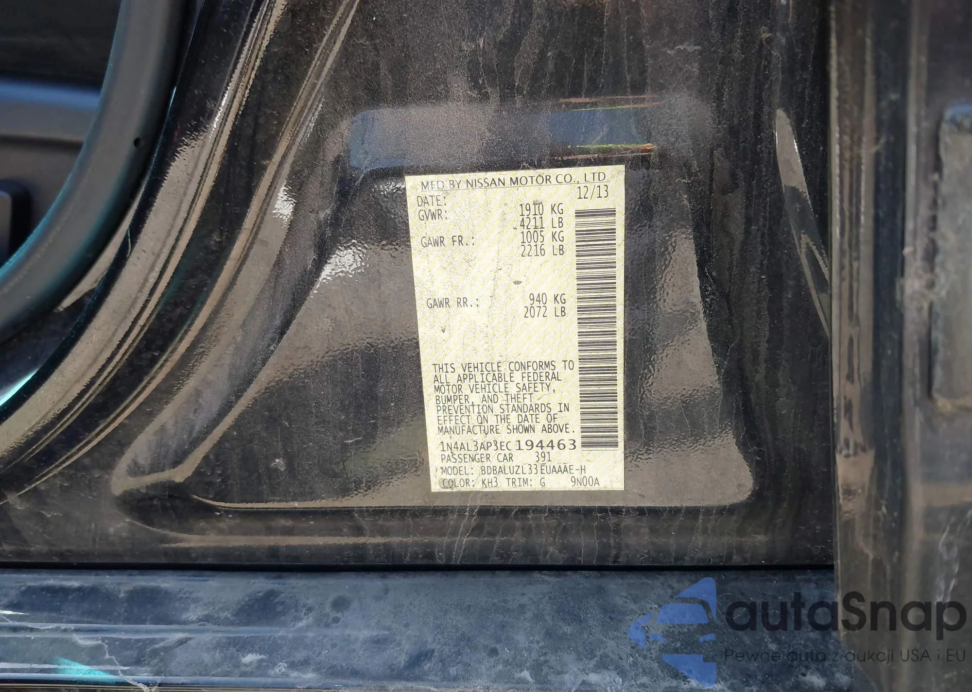 VIN: 1N4AL3AP3EC194463
