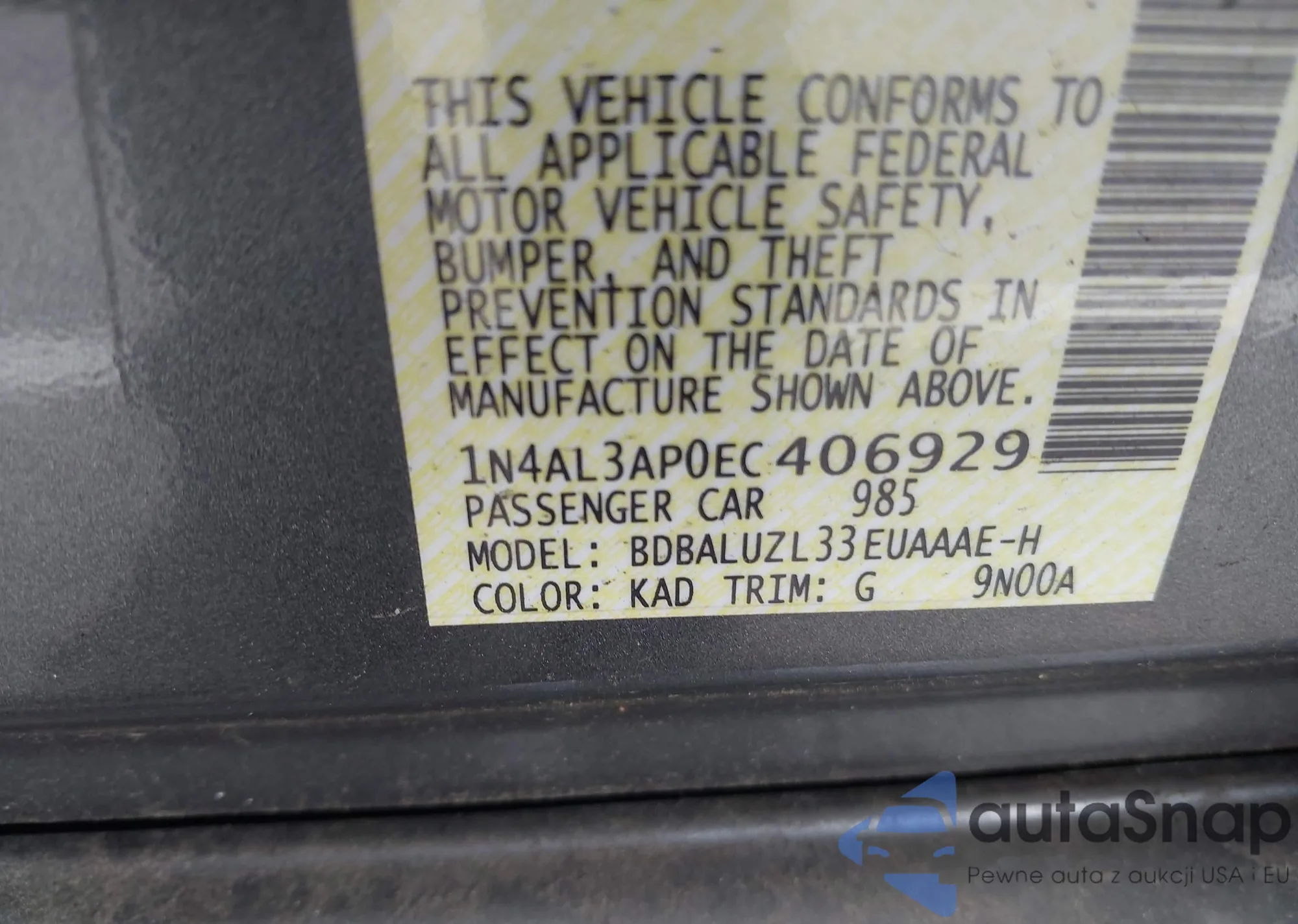 VIN: 1N4AL3AP0EC406929