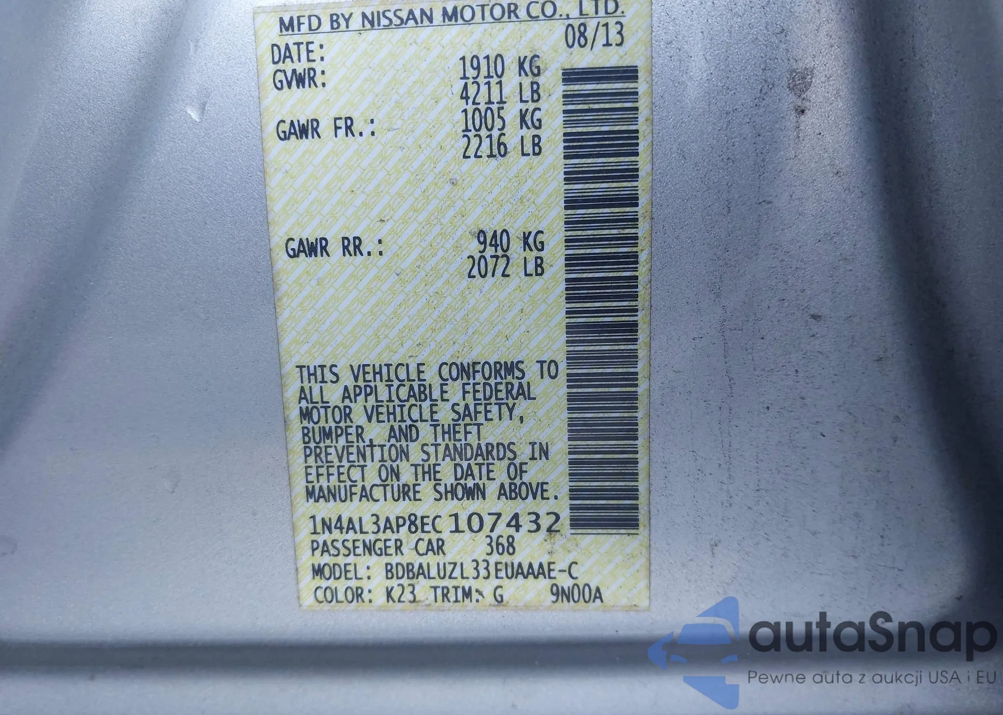 VIN: 1N4AL3AP8EC107432