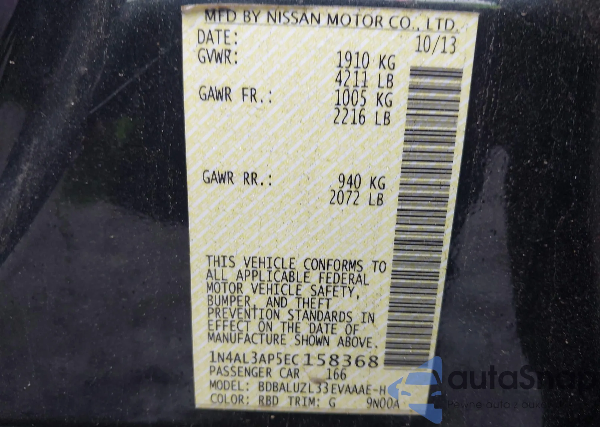 VIN: 1N4AL3AP5EC158368