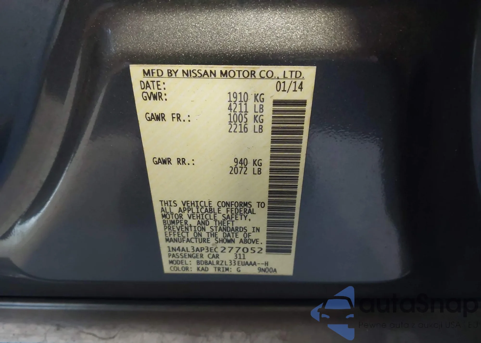 VIN: 1N4AL3AP3EC277052