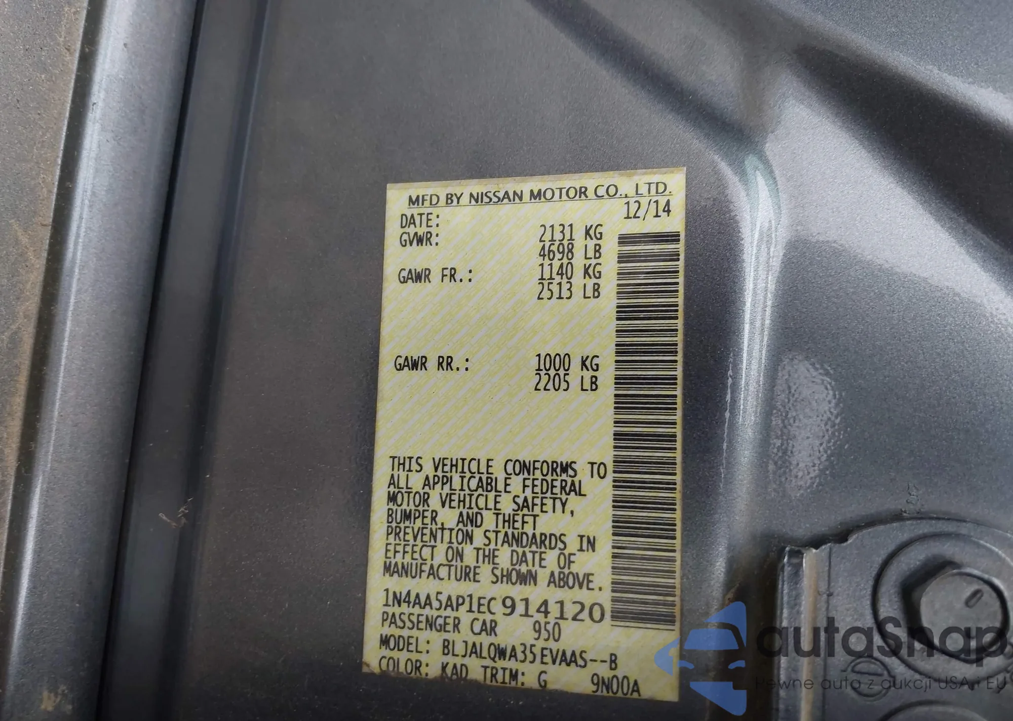 VIN: 1N4AA5AP1EC914120