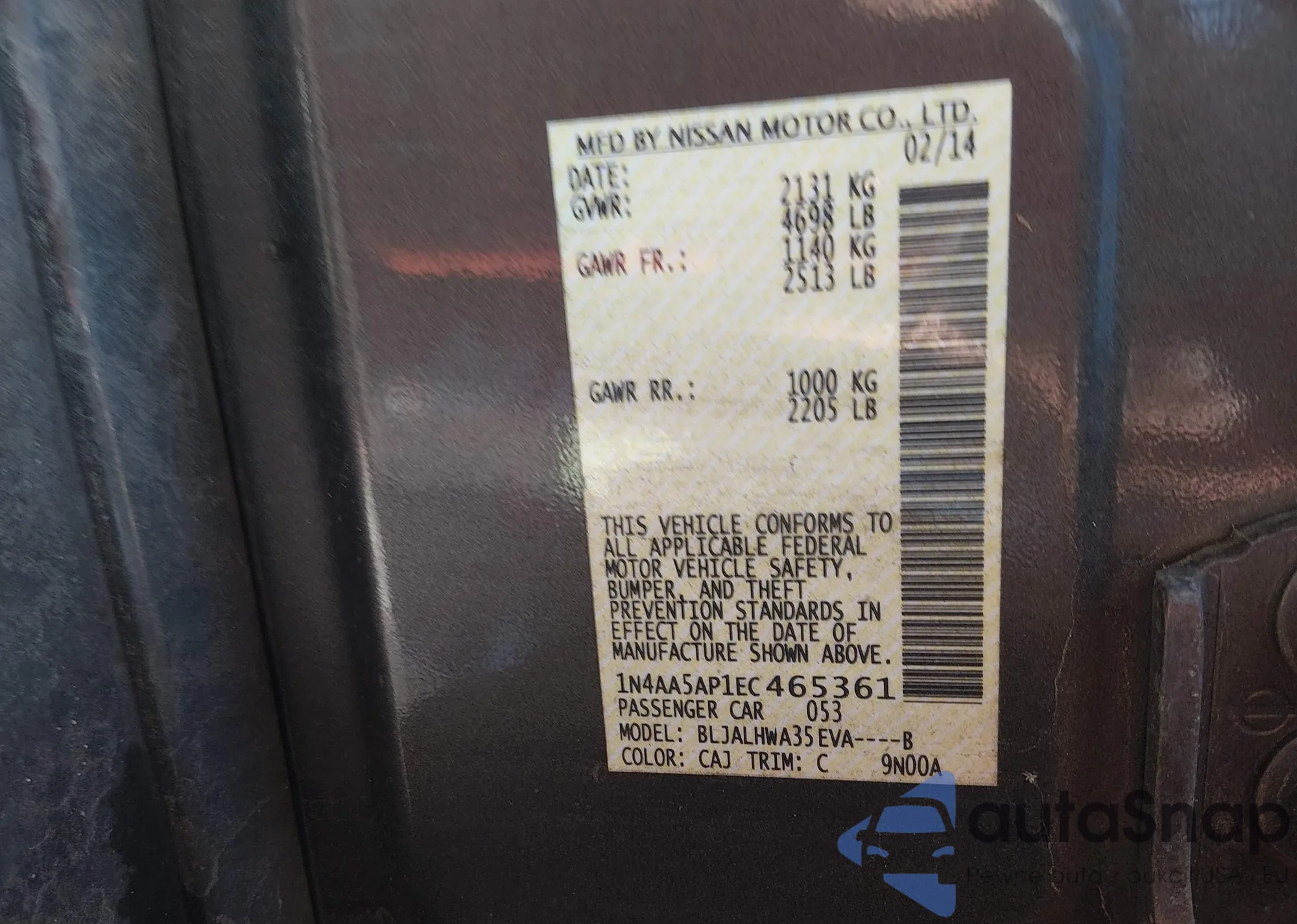 VIN: 1N4AA5AP1EC465361