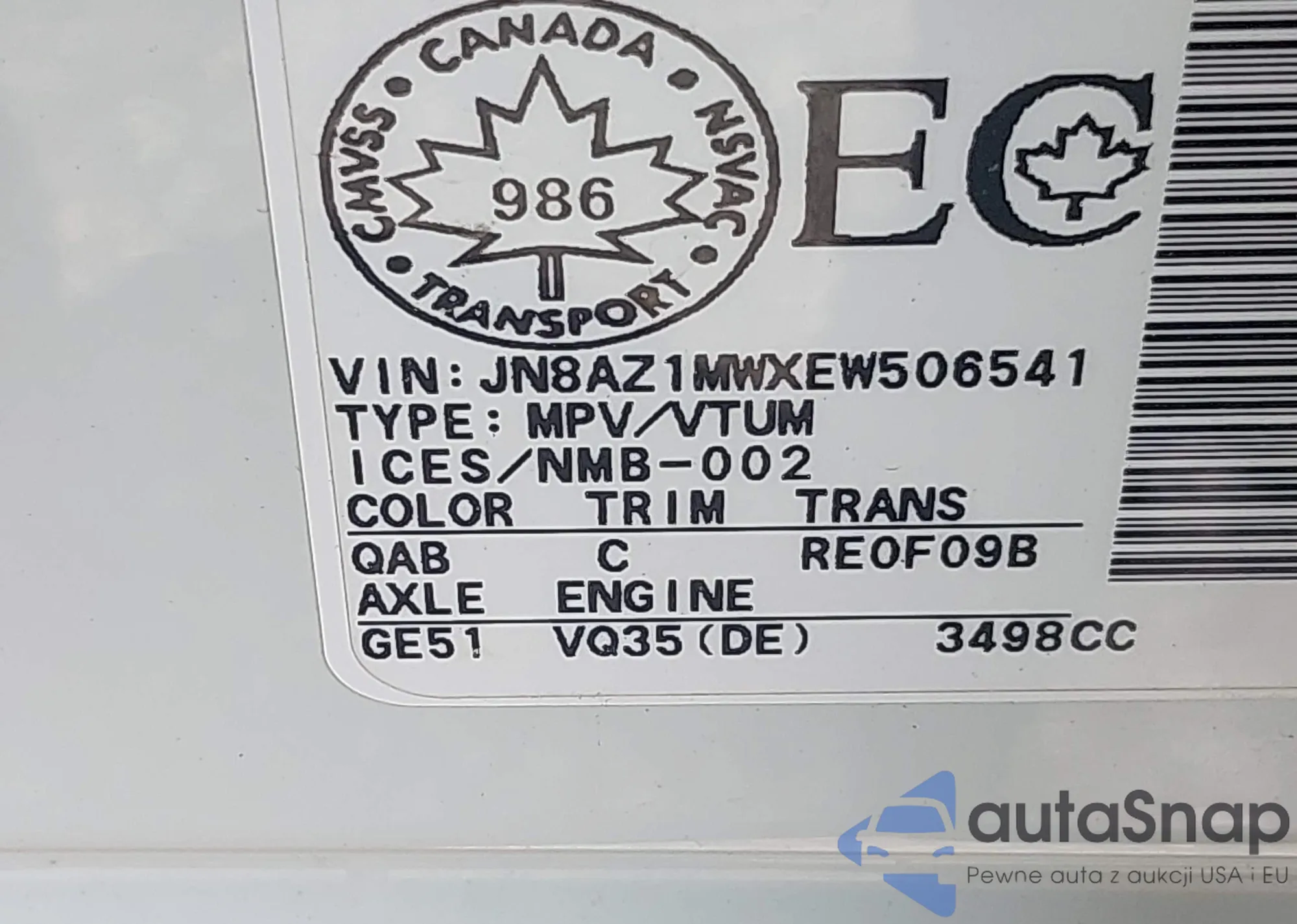 VIN: JN8AZ1MWXEW506541