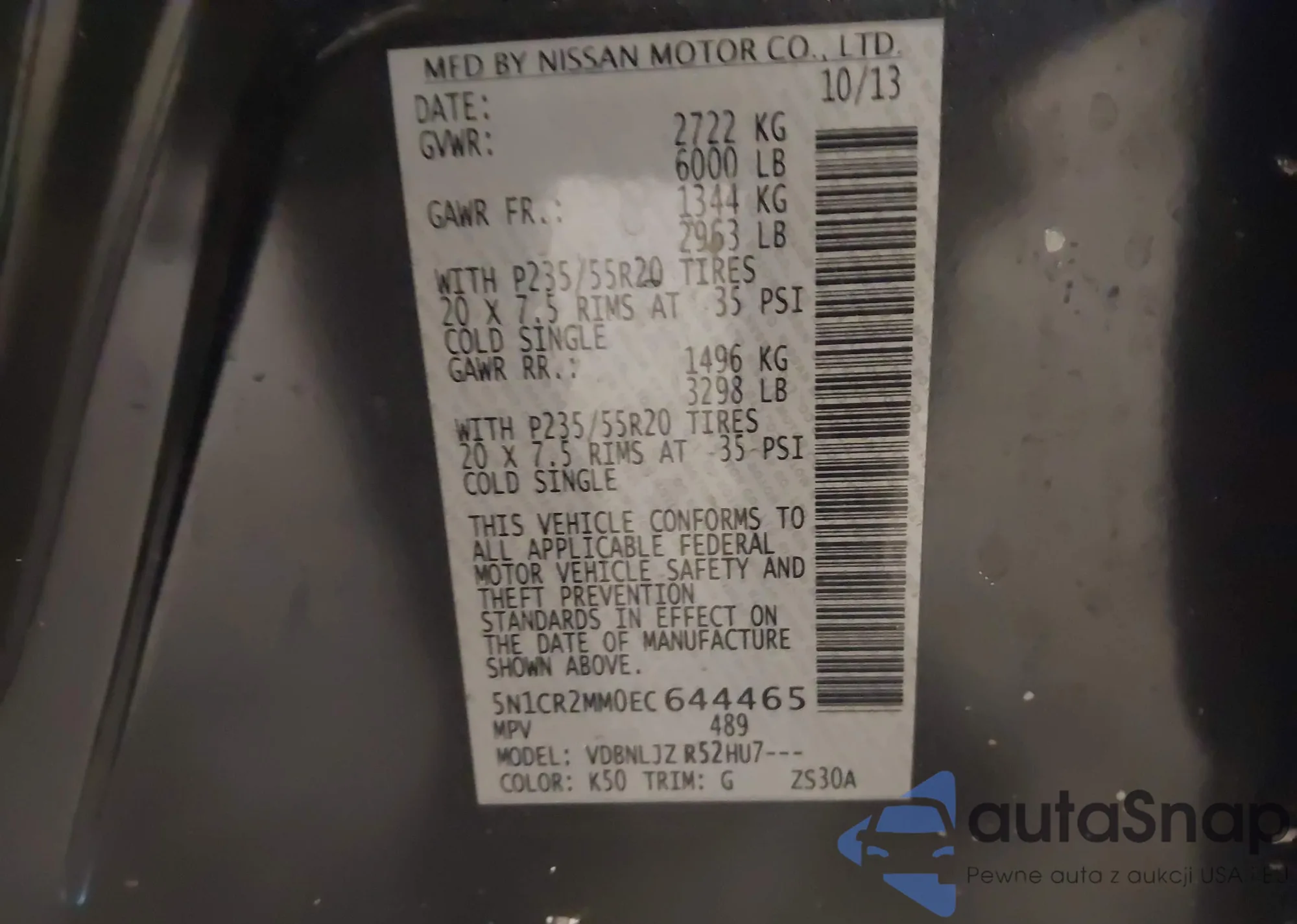 • VIN: 5N1CR2MM0EC644465