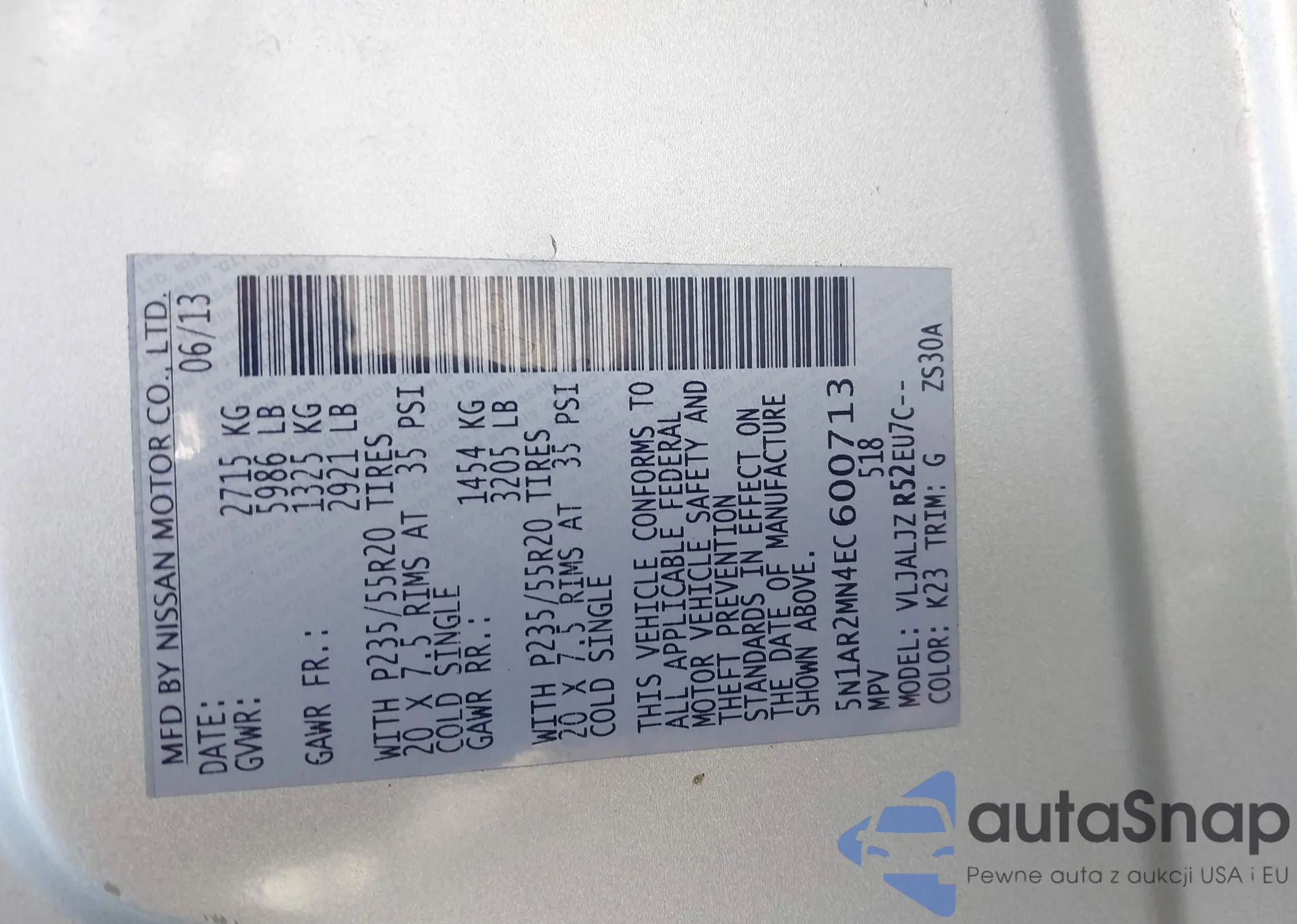 VIN: 5N1AR2MN4EC600713