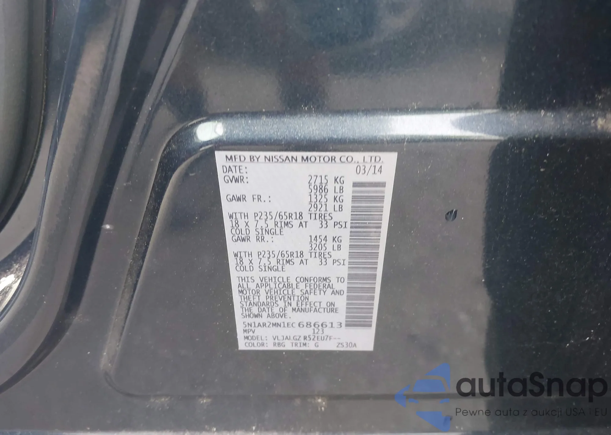 VIN: 5N1AR2MN1EC686613