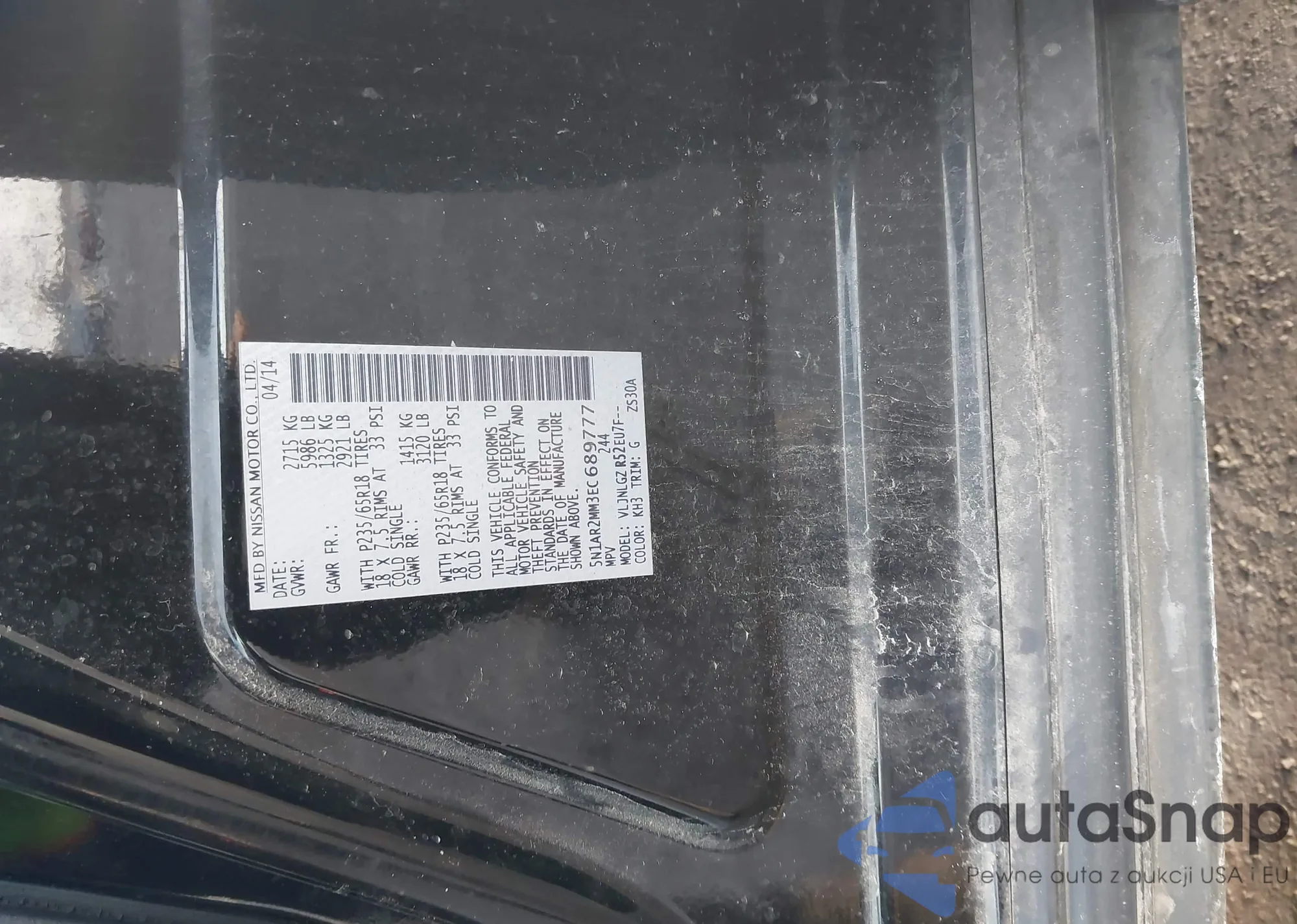 VIN: 5N1AR2MM3EC689777