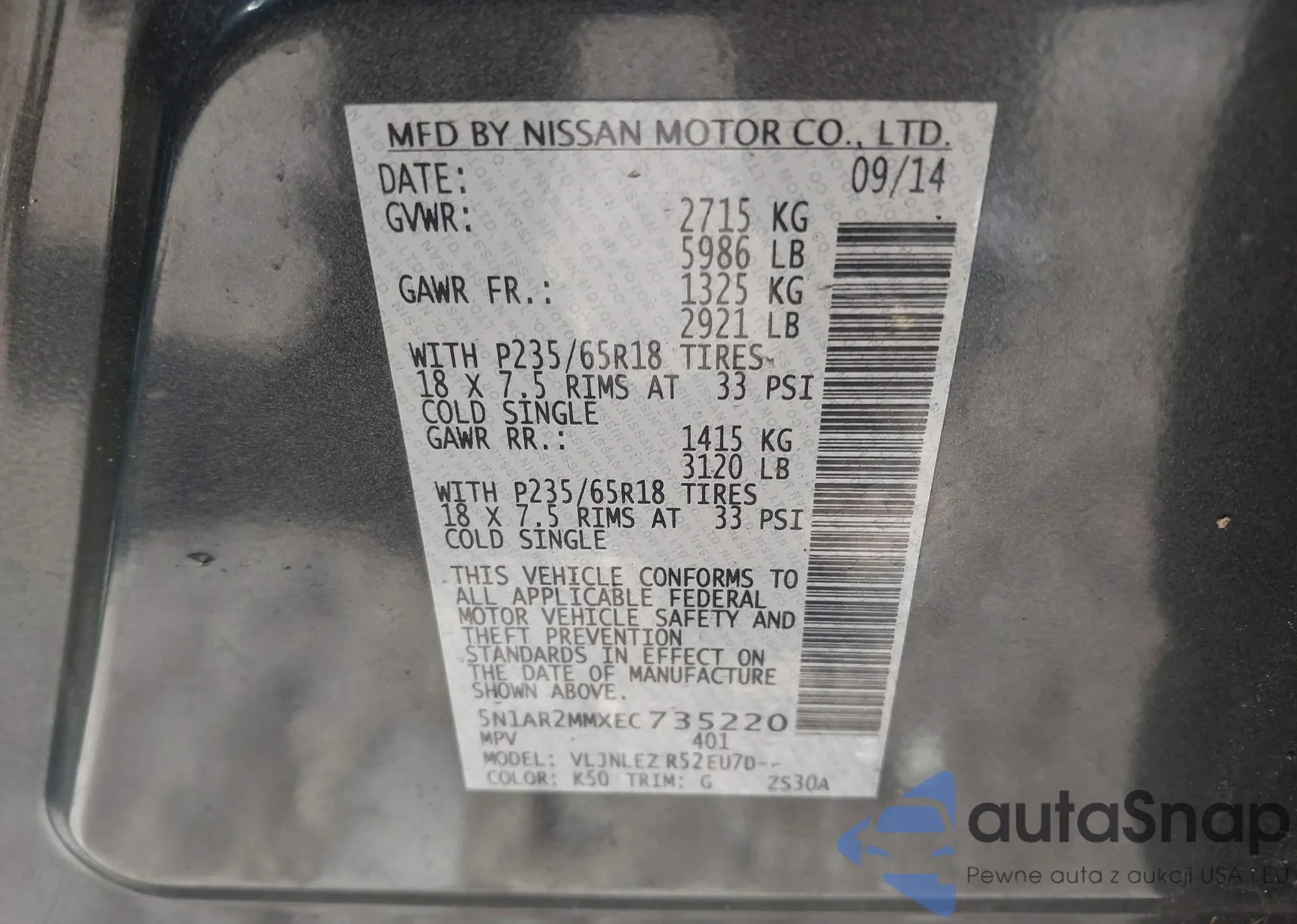 VIN: 5N1AR2MMXEC735220