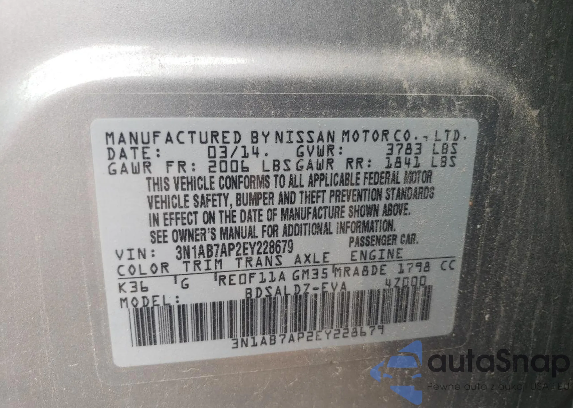 VIN: 3N1AB7AP2EY228679