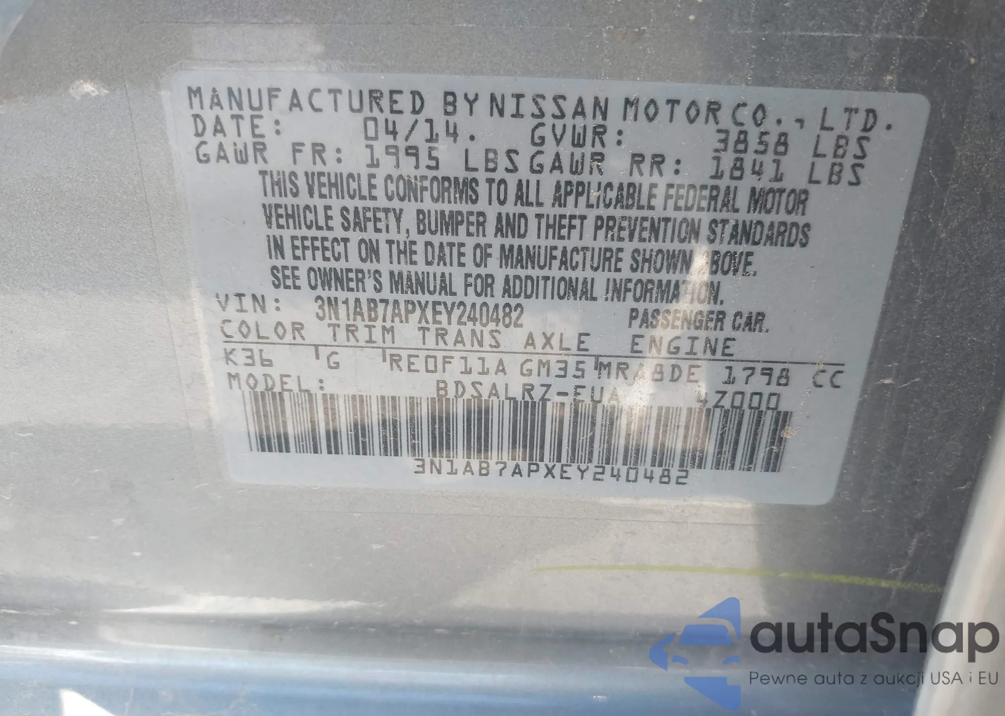 VIN: 3N1AB7APXEY240482