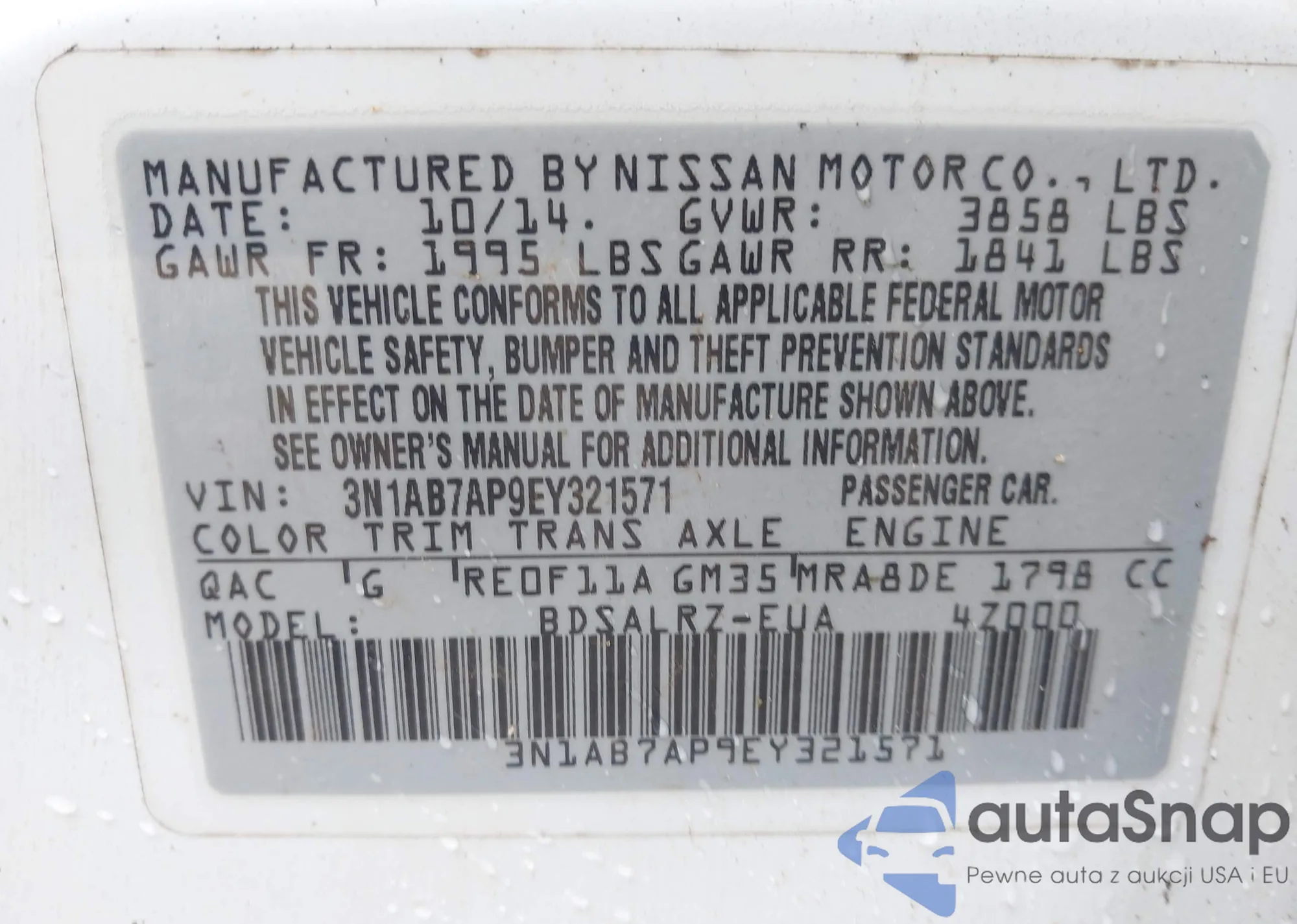 VIN: 3N1AB7AP9EY321571