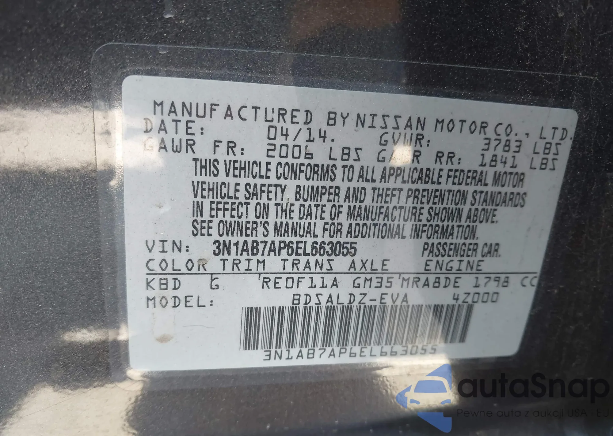 VIN: 3N1AB7AP6EL663055