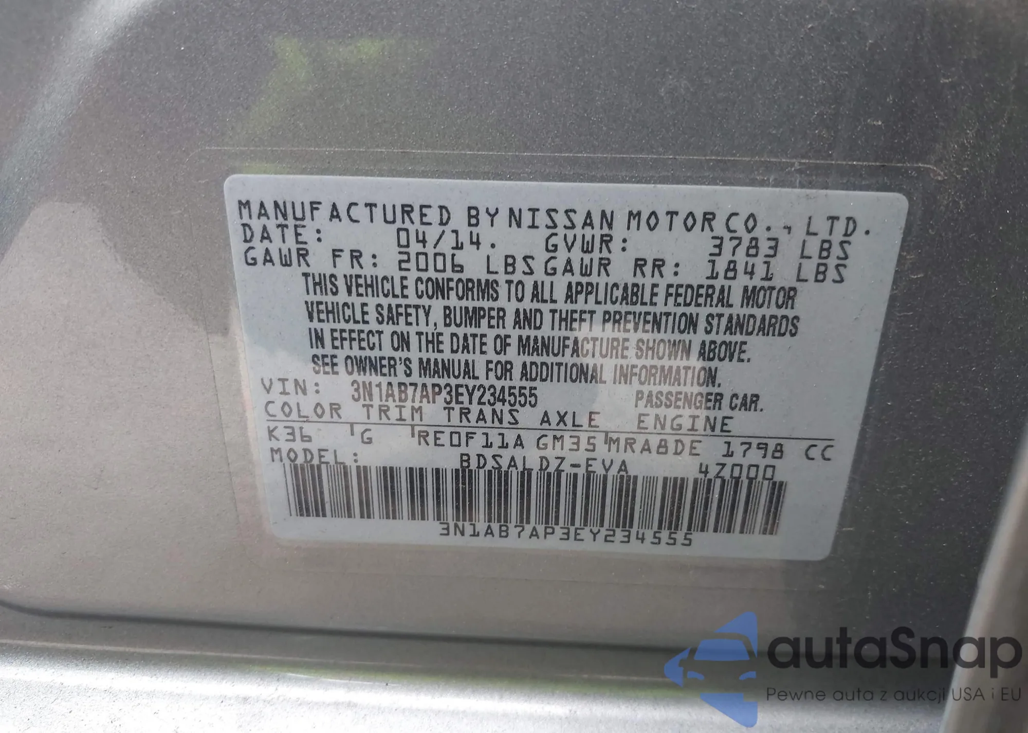 VIN: 3N1AB7AP3EY234555