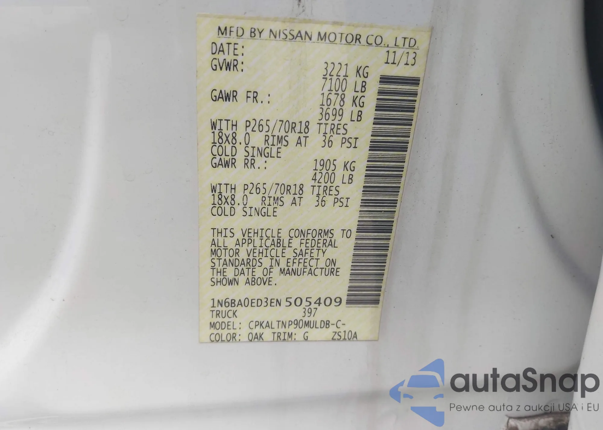 VIN: 1N6BA0ED3EN505409