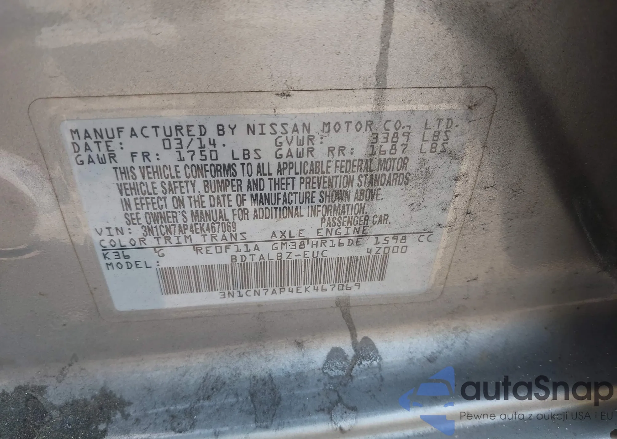 VIN: 3N1CN7AP4EK467069