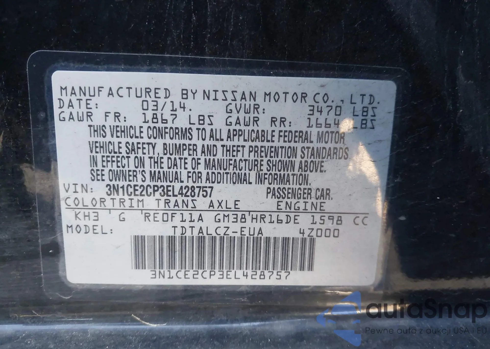 VIN: 3N1CE2CP3EL428757