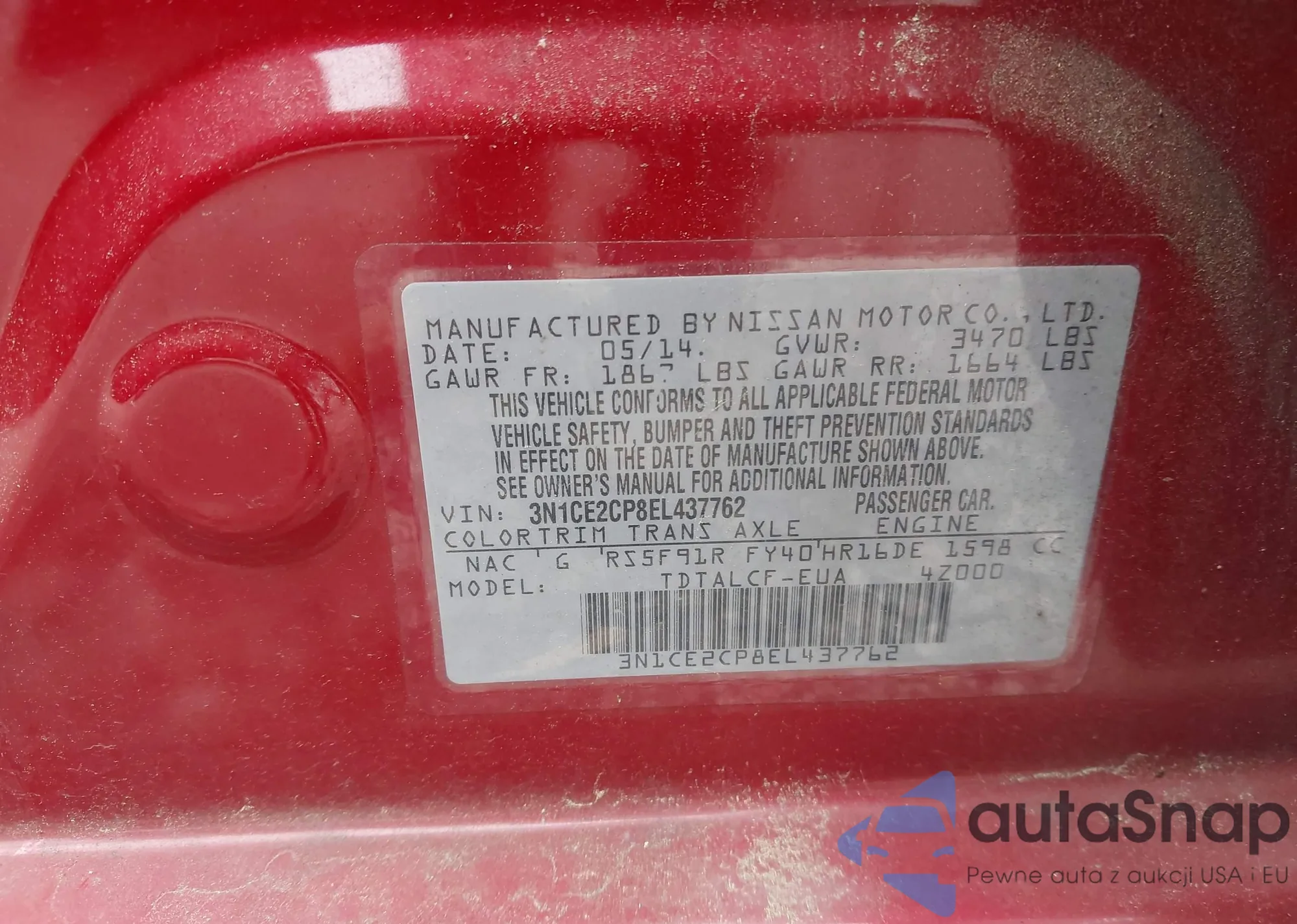 • VIN: 3N1CE2CP8EL437762