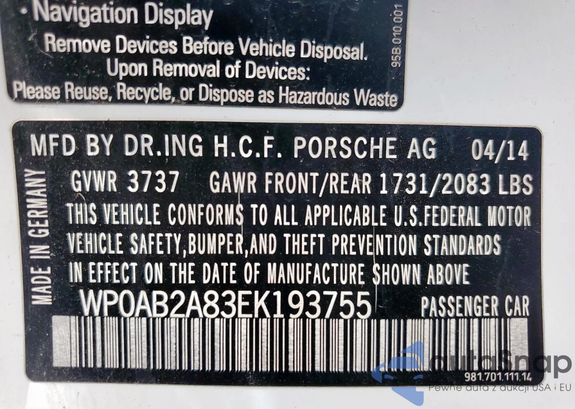 VIN: WP0AB2A83EK193755
