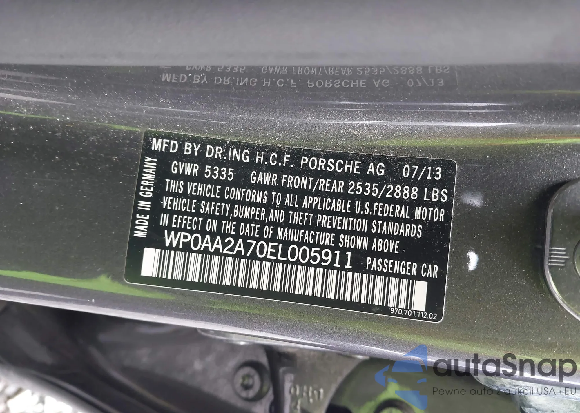 VIN: WP0AA2A70EL005911