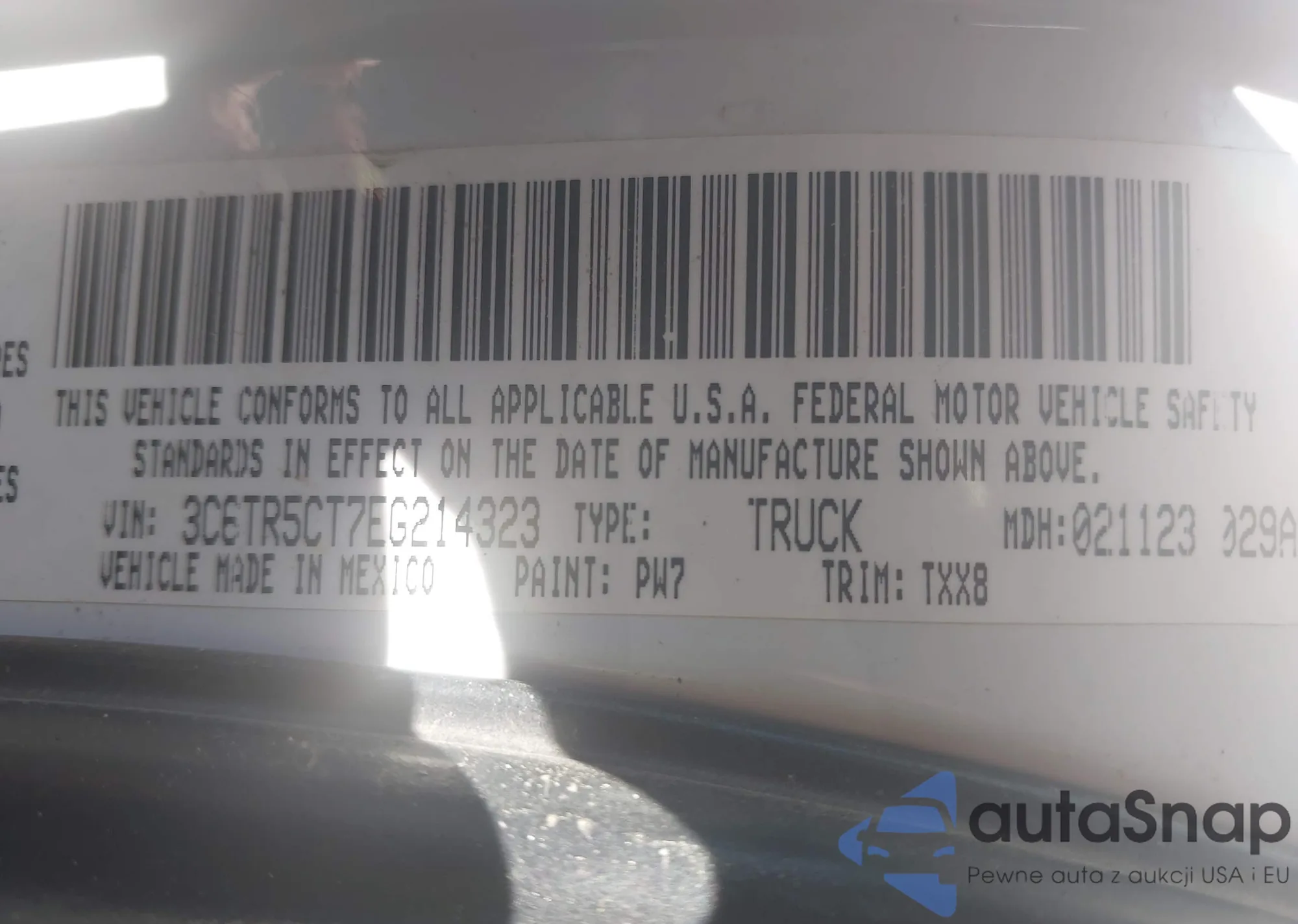 Автомобиль RAM 2500 2014 (VIN 3C6TR5CT7EG214323) имеет документы, препятствующие регистрации. Могут возникнуть сложности при экспорте и регистрации. Обратитесь к экспертам AutaSnap для поиска альтернатив.