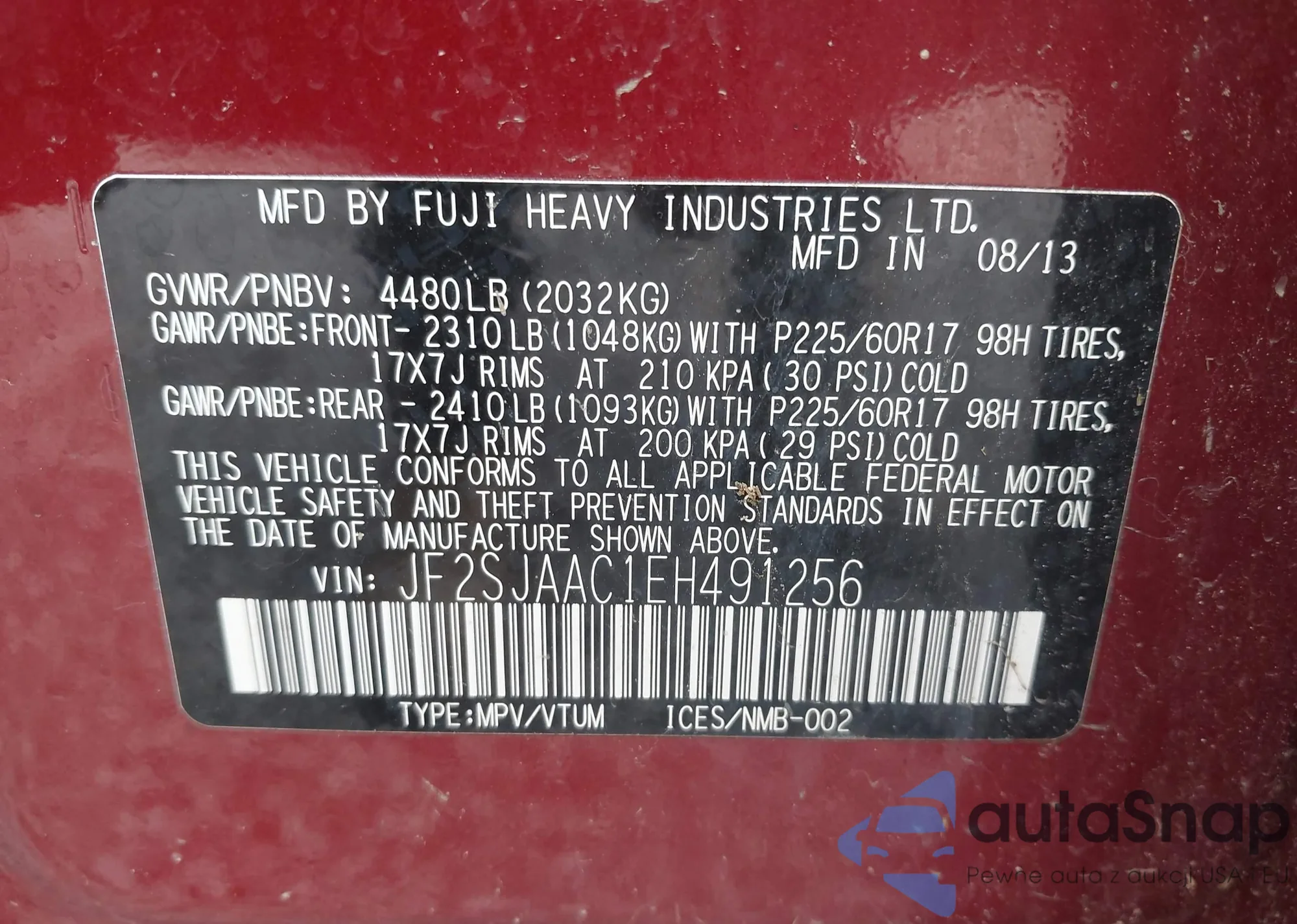 VIN: JF2SJAAC1EH491256
