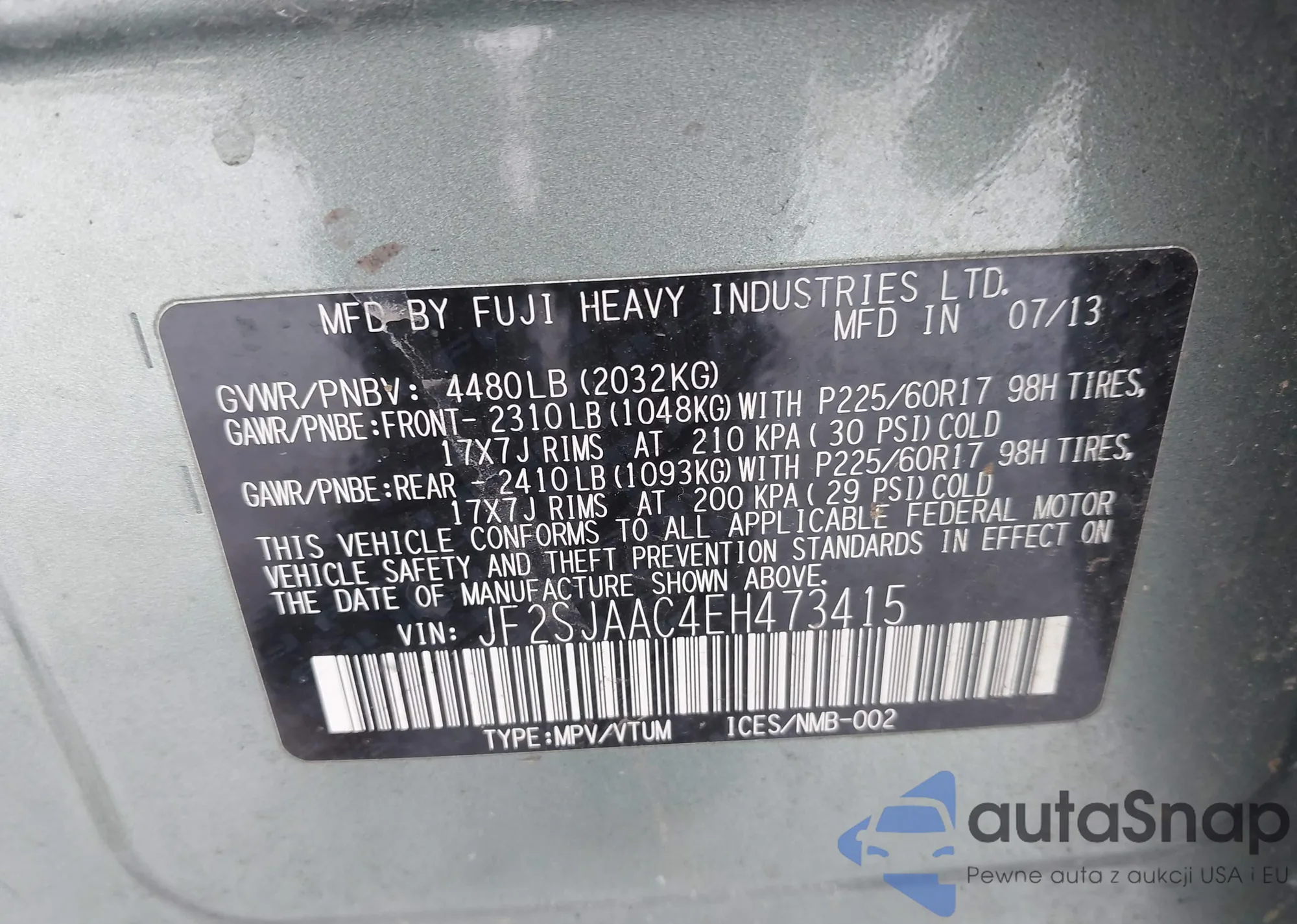 • VIN: JF2SJAAC4EH473415