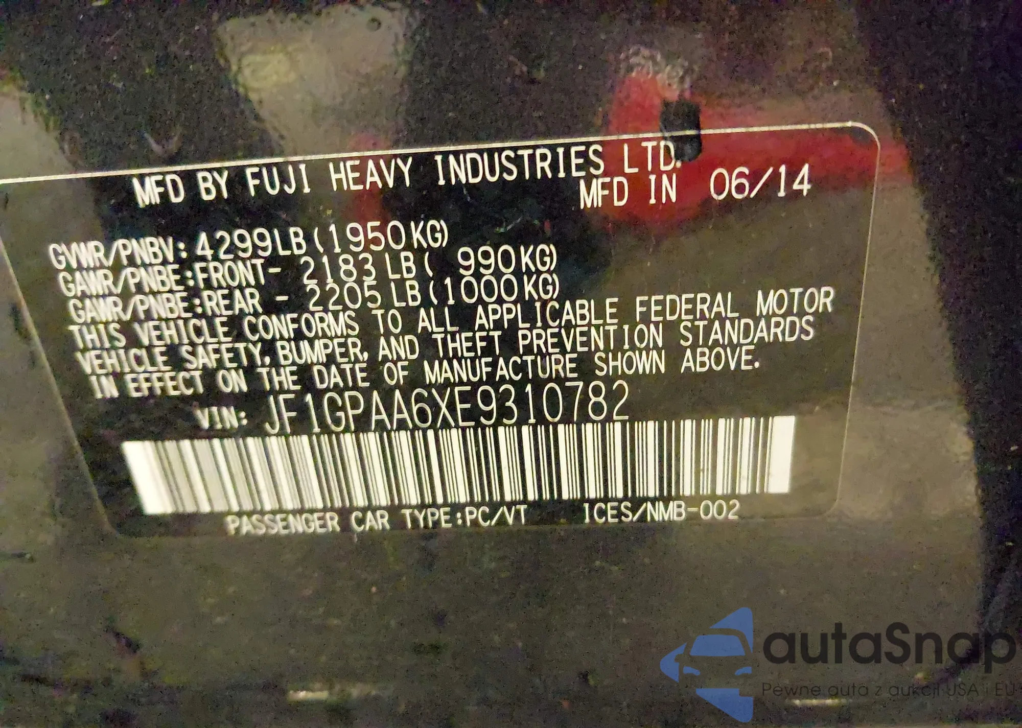 • VIN: JF1GPAA6XE9310782