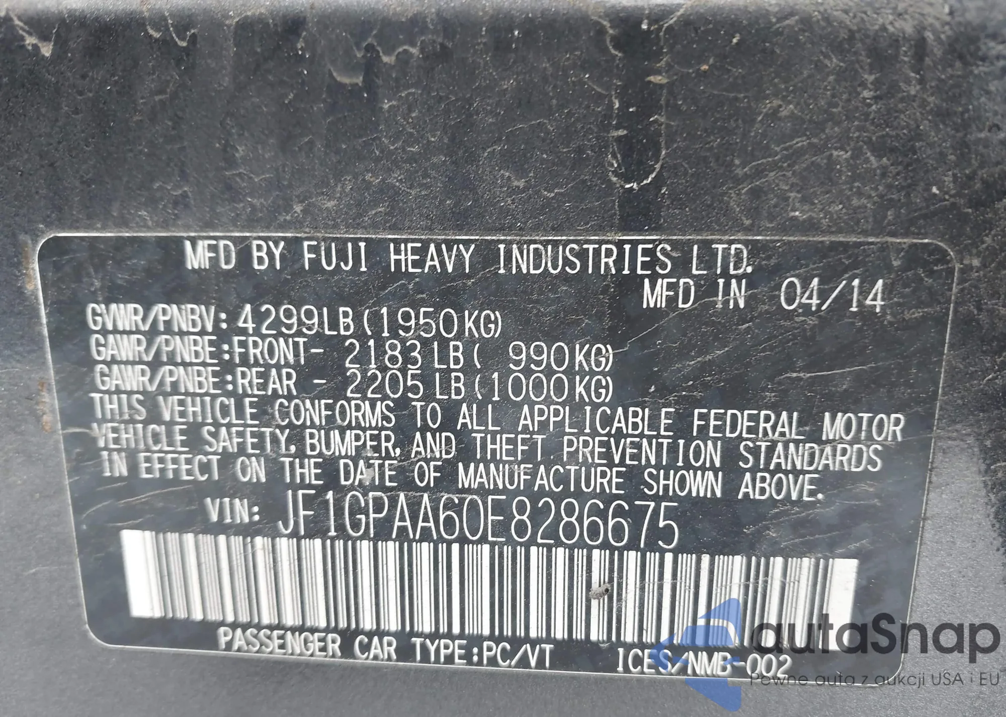 VIN: JF1GPAA60E8286675