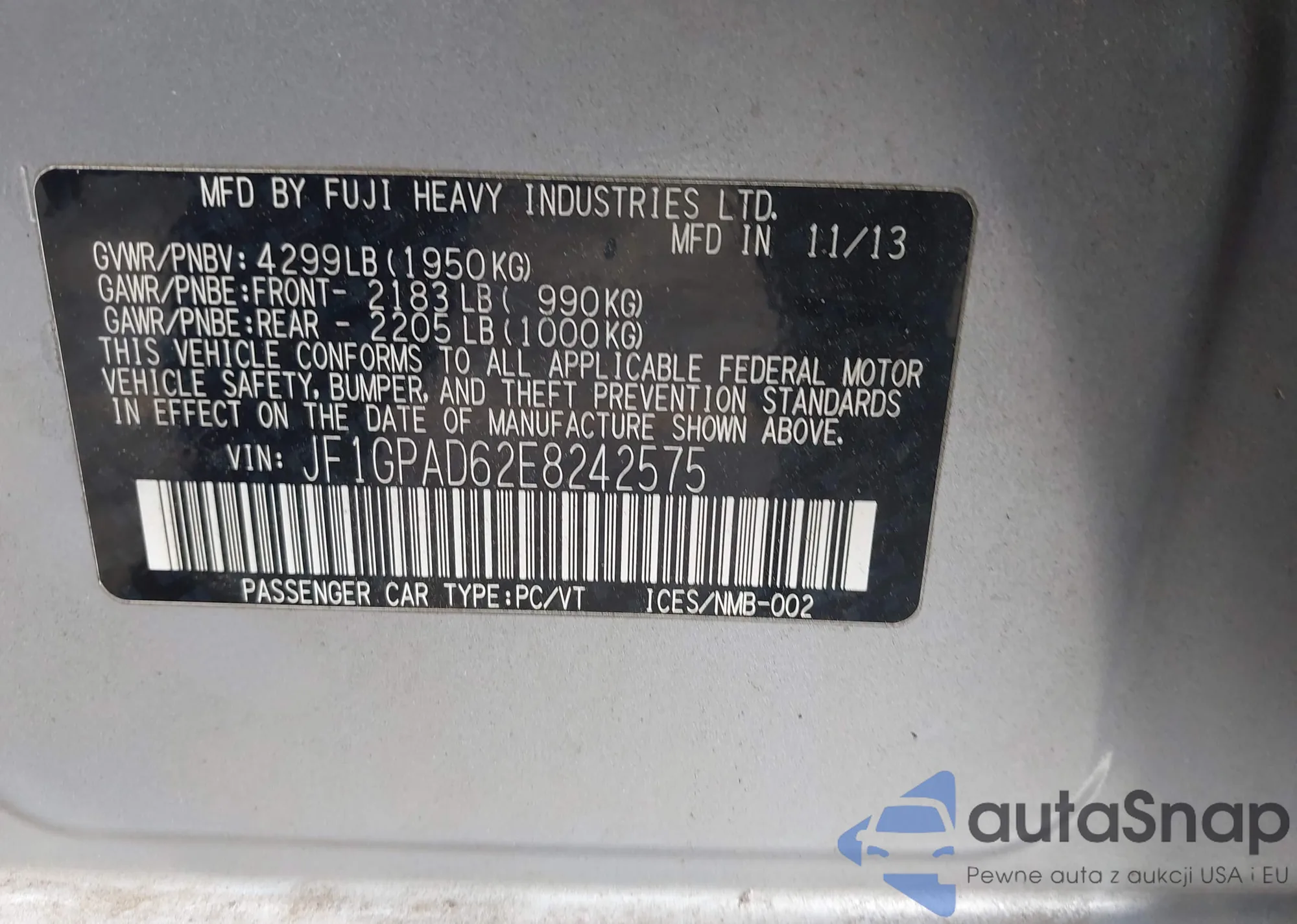 • VIN: JF1GPAD62E8242575