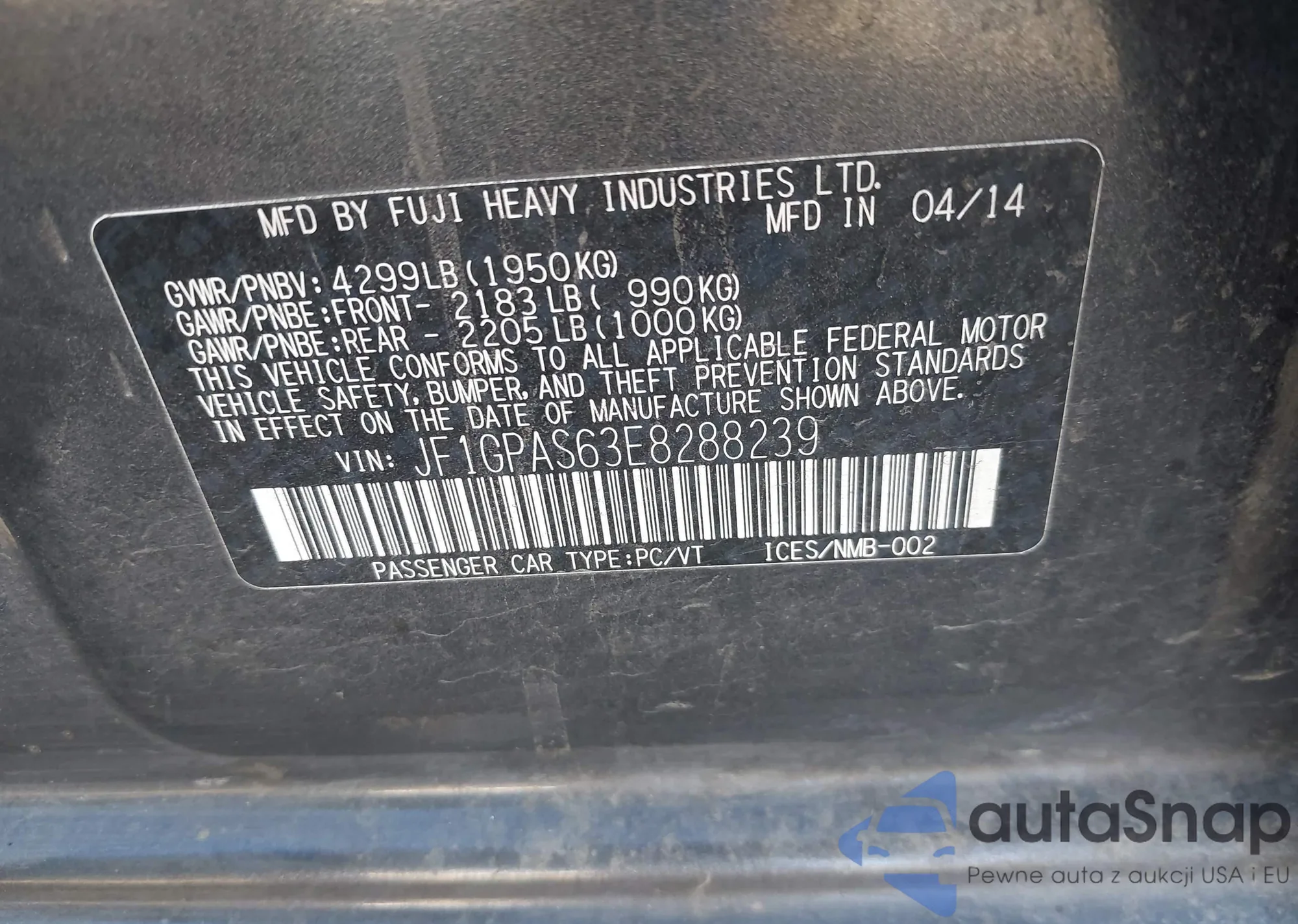 VIN: JF1GPAS63E8288239
